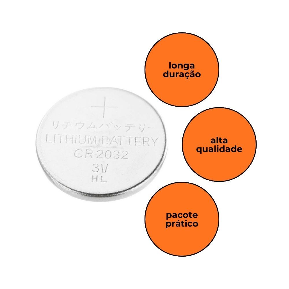 Bateria de Lítio Foxlux CR2032 3V Cartela com 5 Unidades Para Relógios Placas Controles e Balanças