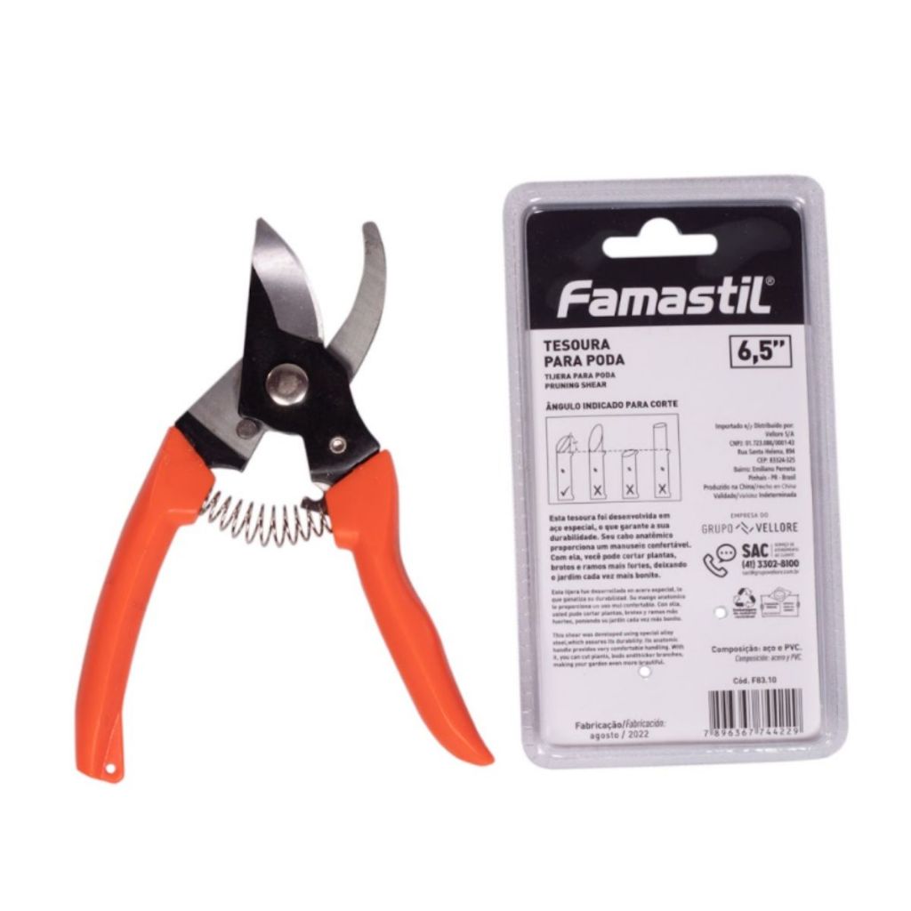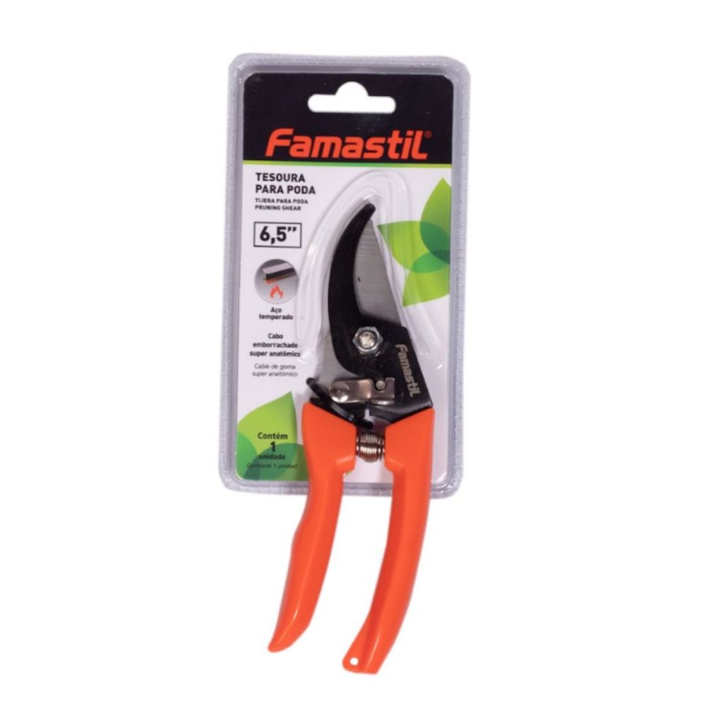 Tesoura para Poda Jardinagem Famastil 6,5” Aço Carbono Corte Preciso para Flores e Galhos Finos