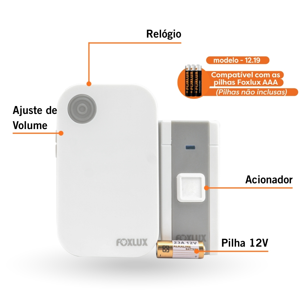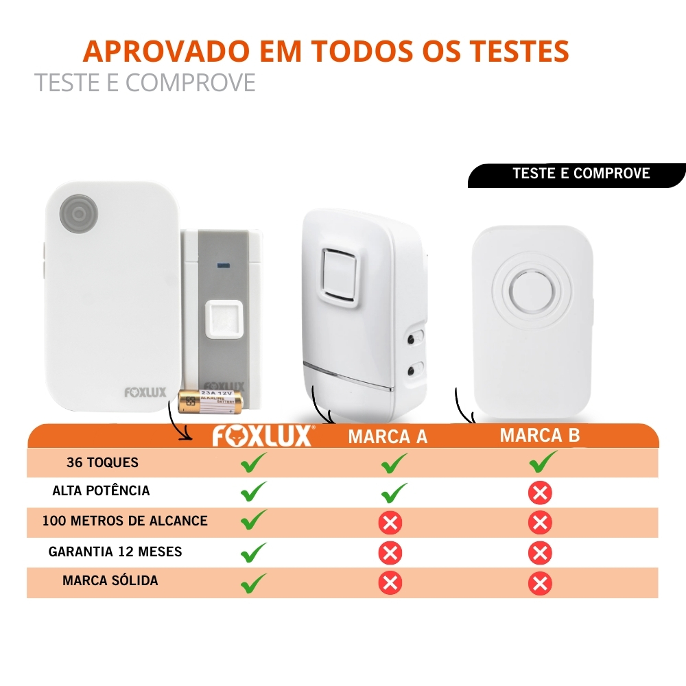 Campainha Sem Fio Foxlux CAD 6 — 36 Toques Bivolt IP44 Fácil Instalação