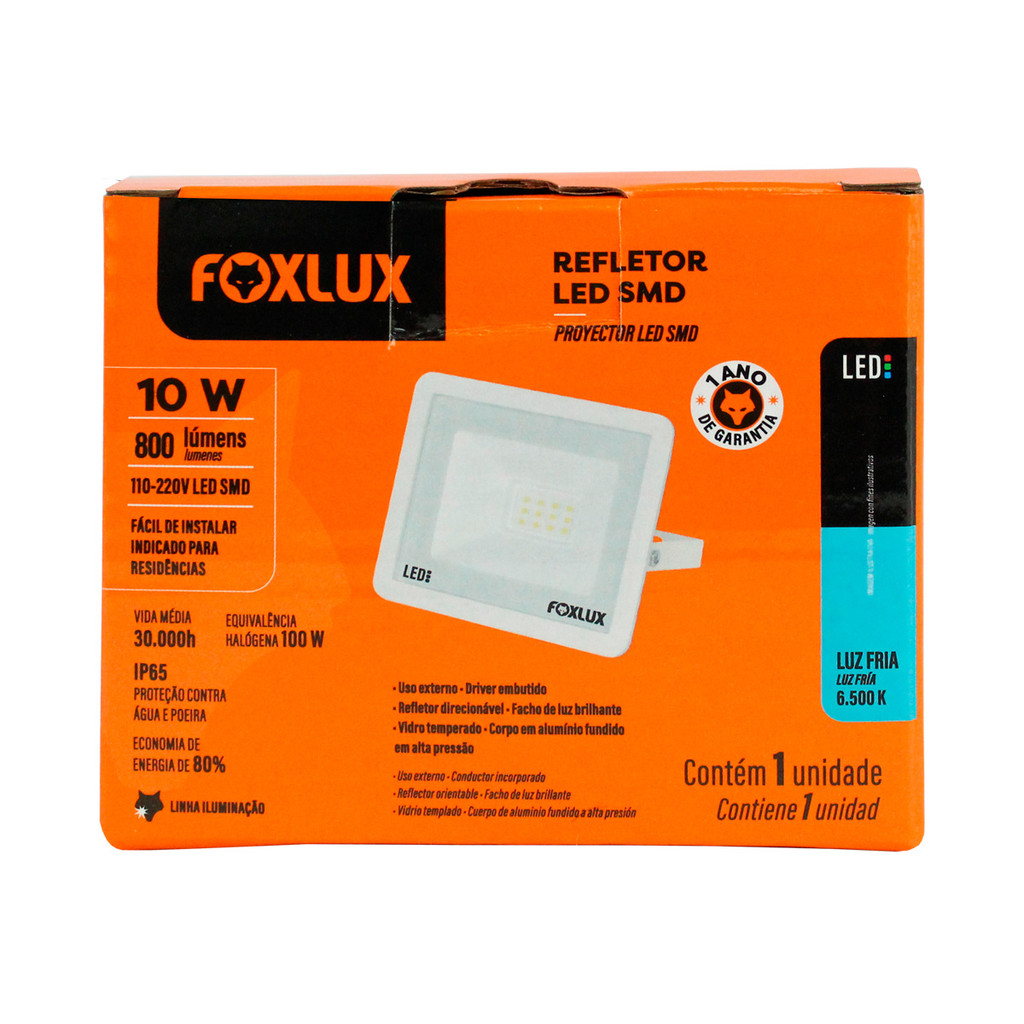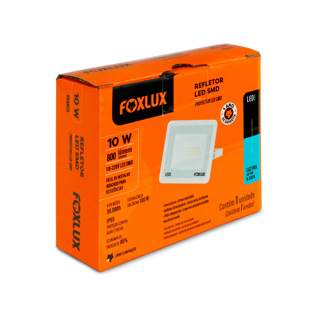 Kit 2 Refletor Led Foxlux 10W 6500K Branco Bivolt | iluminação intensa, baixo consumo