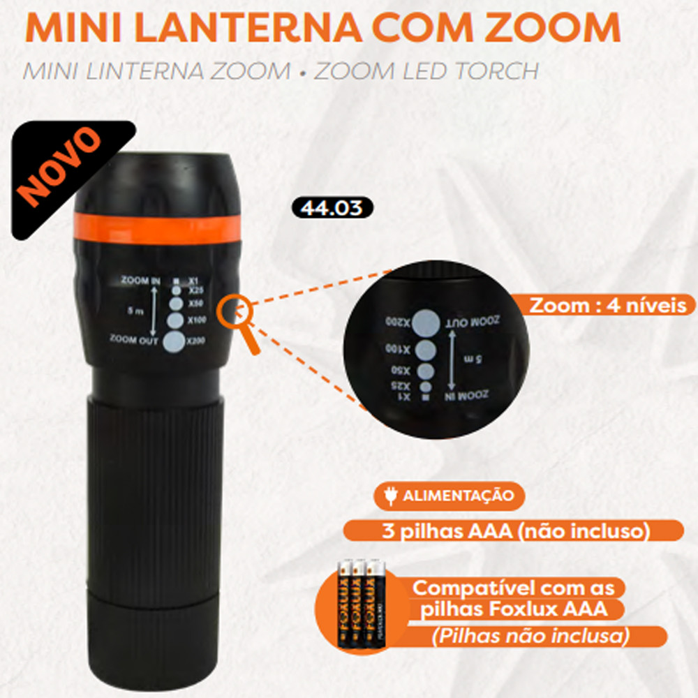 Mini Lanterna Foxlux com Zoom | foco ajustável, design compacto, alta luminosidade