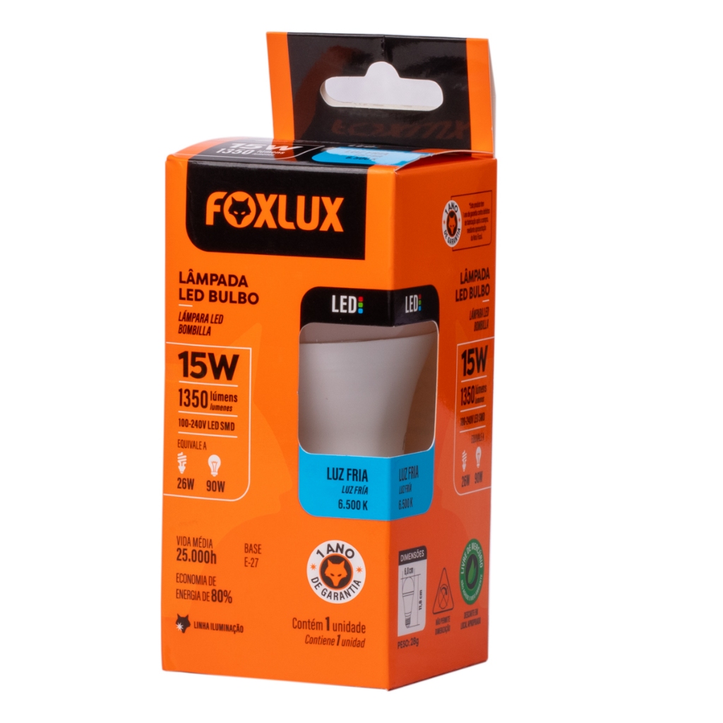 Kit 3 Lâmpada LED Bulbo 15W c/ Base E-27 Bivolt 6500K Foxlux