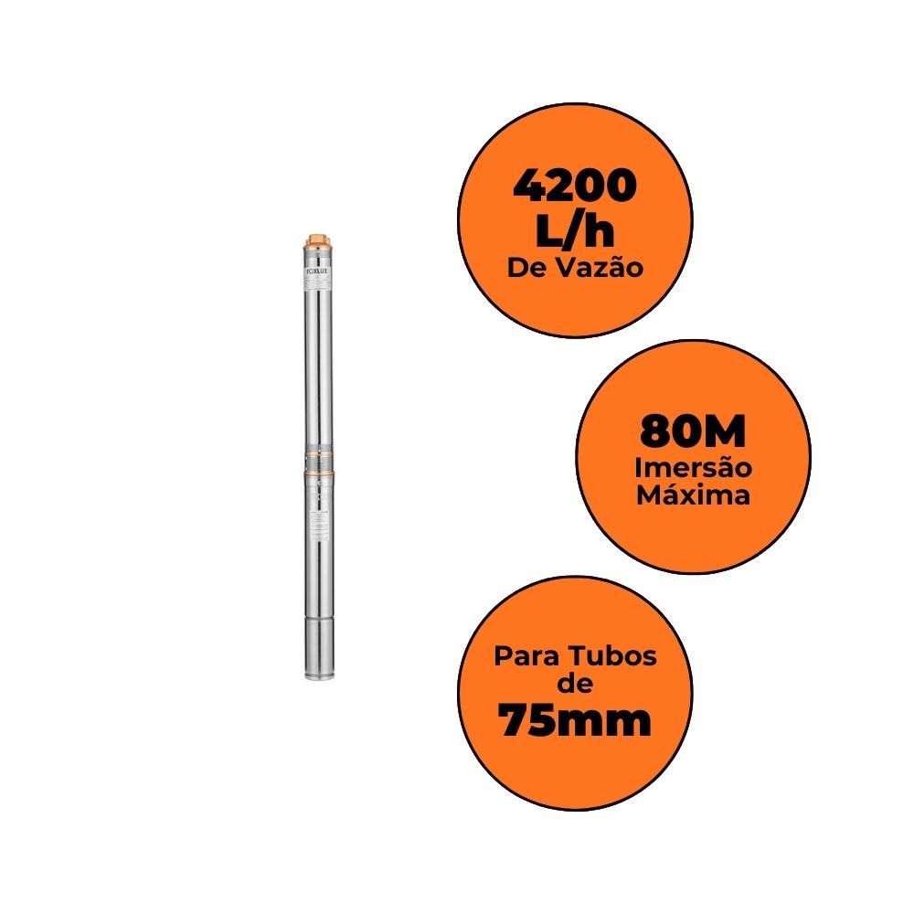 Bomba Caneta Submersa Foxlux 1,5 CV 220V Para Água Limpa ou Levemente Suja com Vazão 18.000 L/h