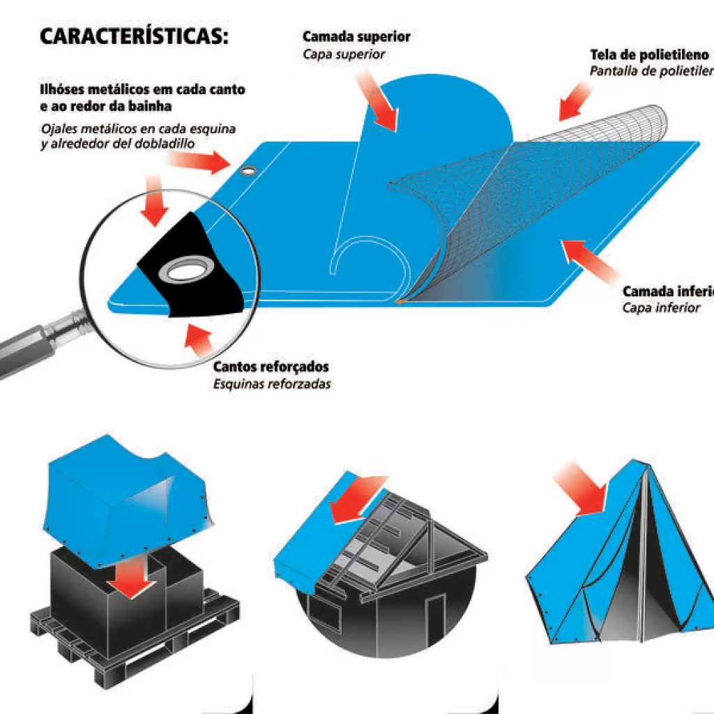 Lona De Polietileno Famastil 10x8 m 150 Micras Azul com Cantos Reforçados para Cobertura e Proteção