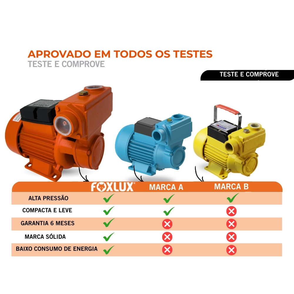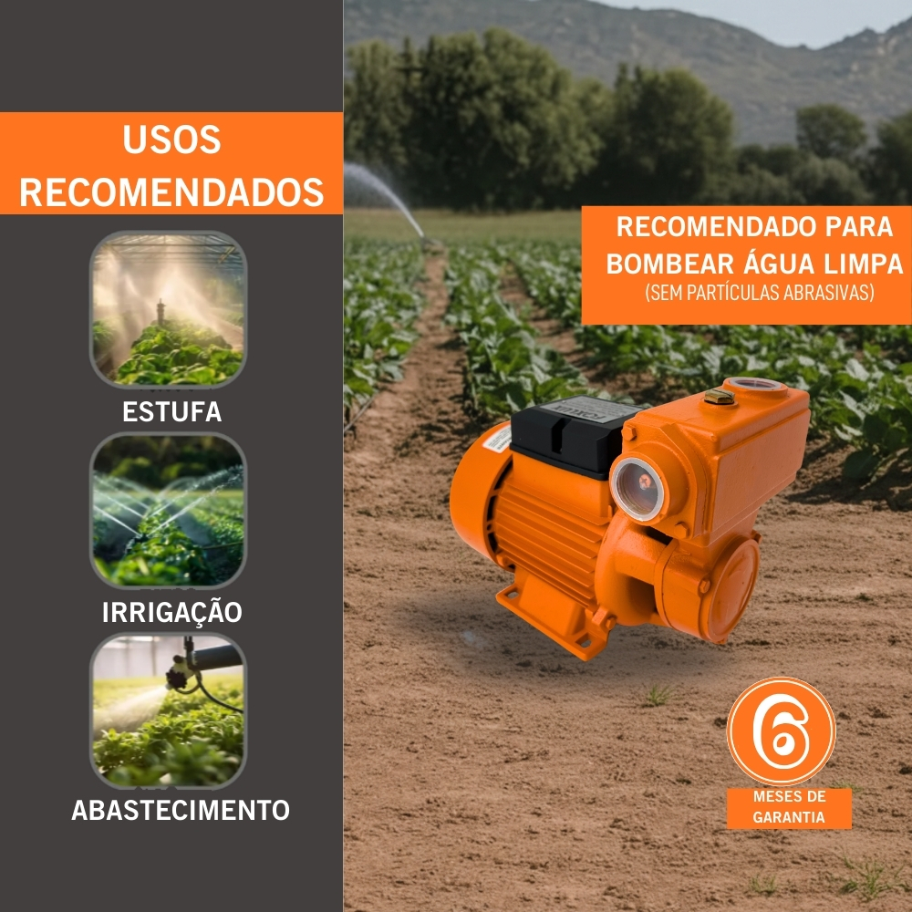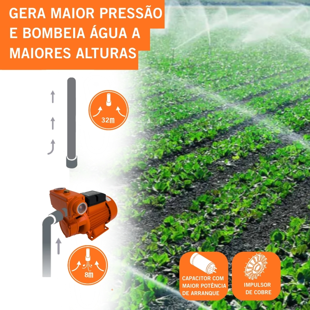 Bomba Periférica Autoaspirante 1/2 CV Bivolt Foxlux Vazão 4.500 L/h Recalque 32m Irrigação