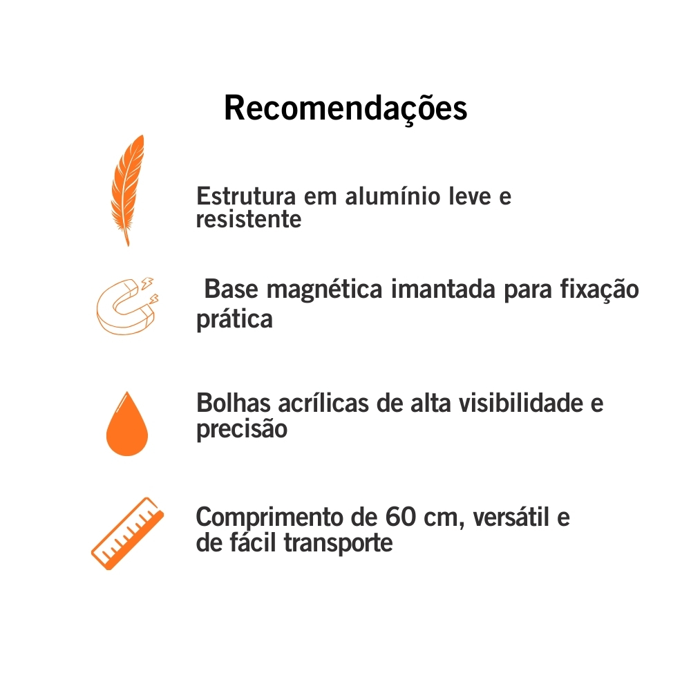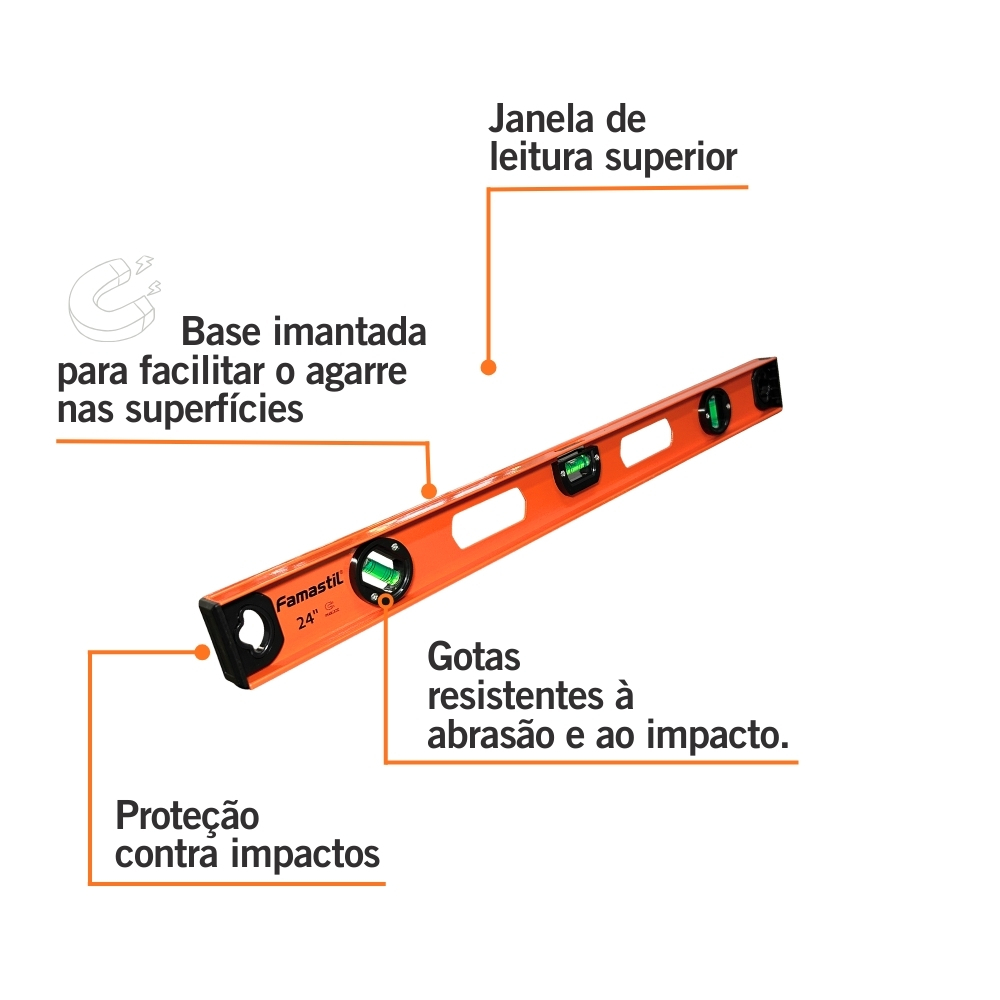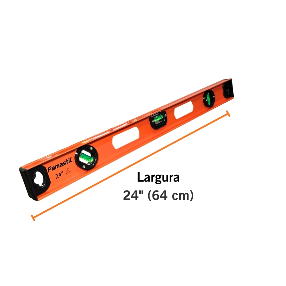 Nível de Alumínio Magnético 24” (60 cm) Famastil com Bolhas Acrílicas e Base Imantada Profissional