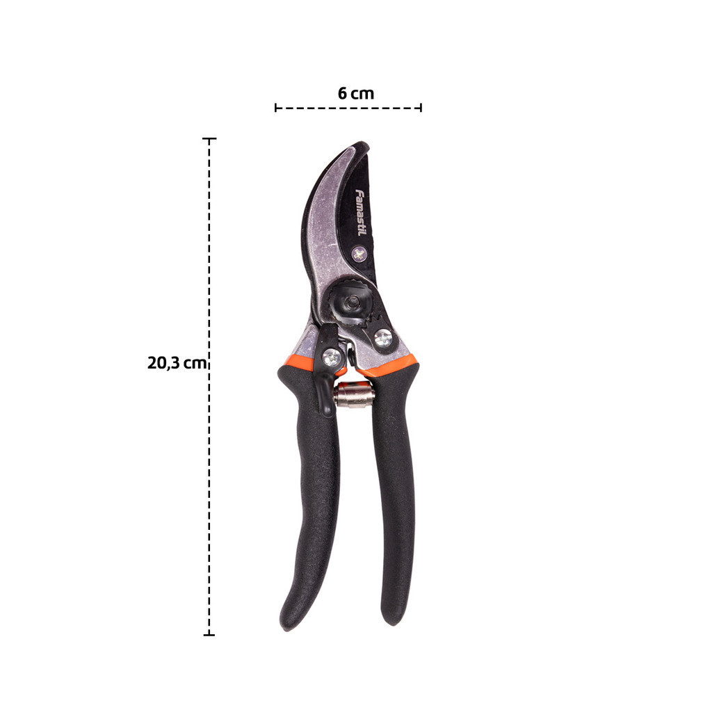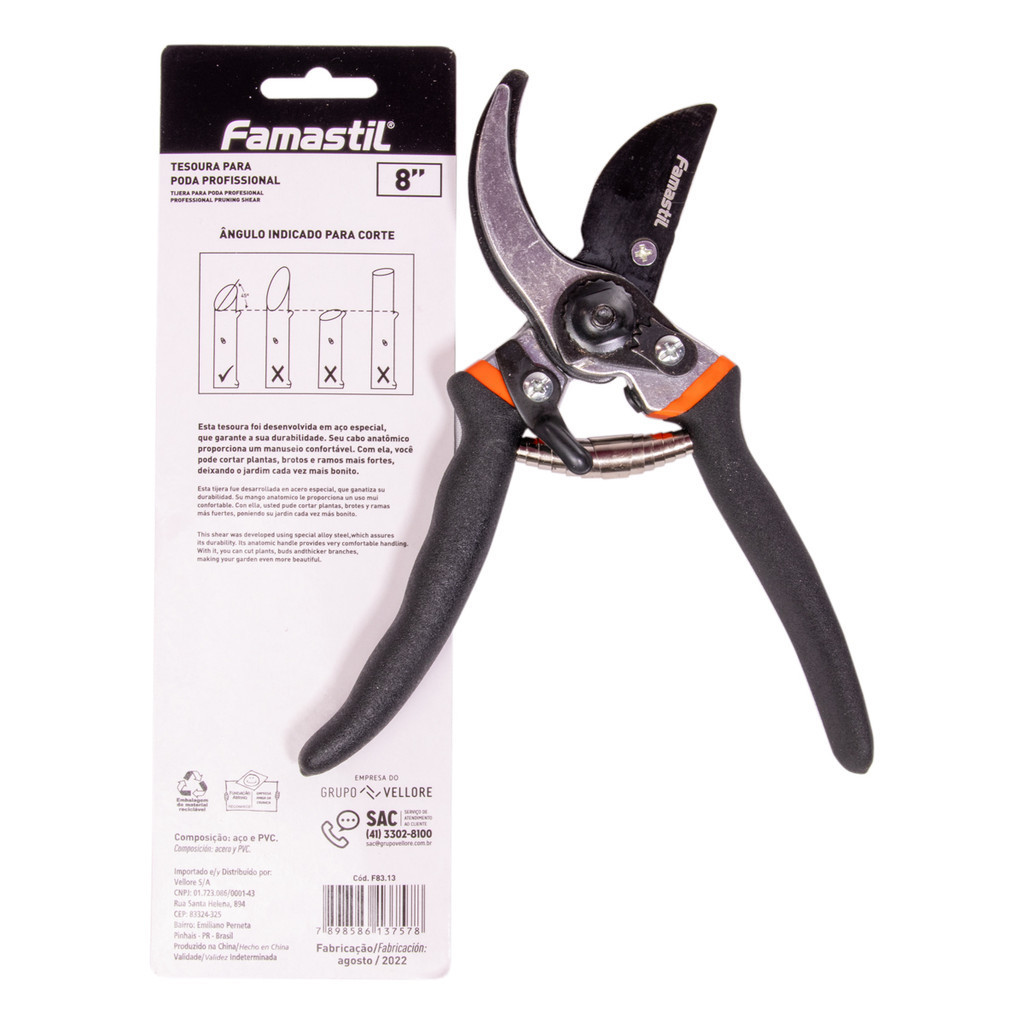 Kit 2 Tesouras de Poda Famastil 8" Aço Carbono Jardinagem Flores Galhos Horta Profissional