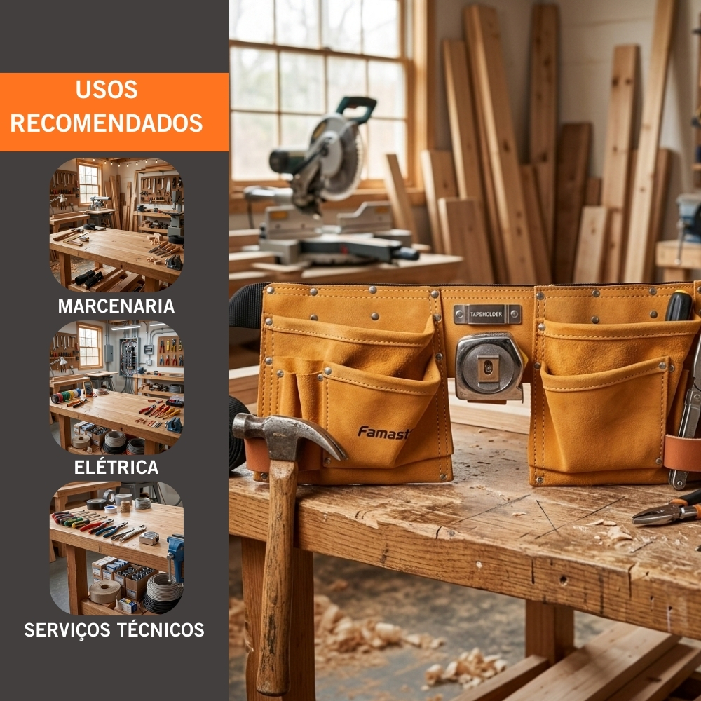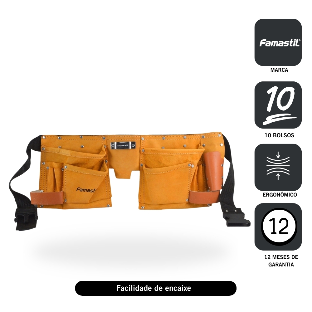 Cinturão Duplo Famastil para Ferramentas com 10 Bolsos | resistência, praticidade