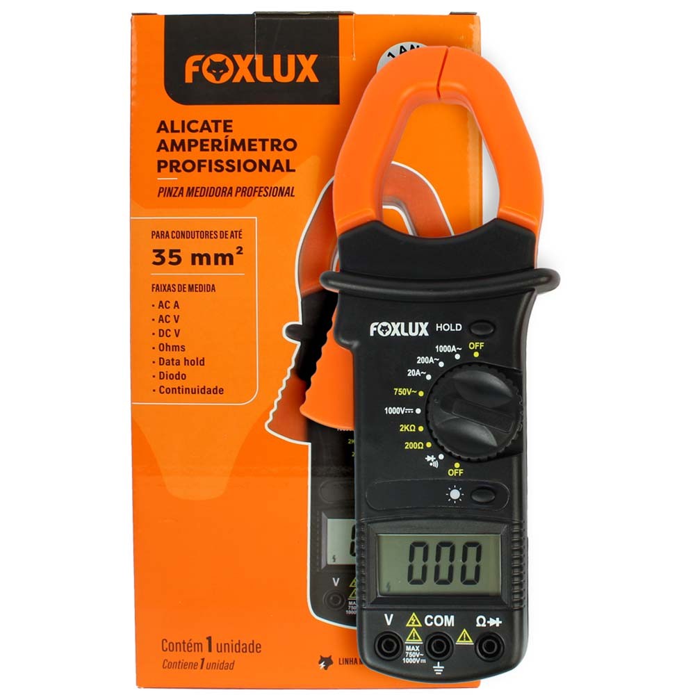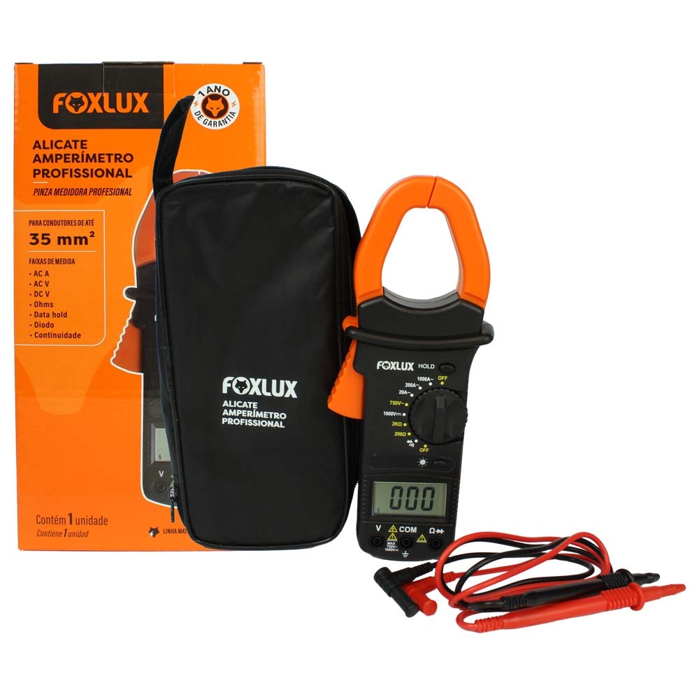 Alicate Amperímetro com Multímetro Foxlux Profissional para Medições Elétricas