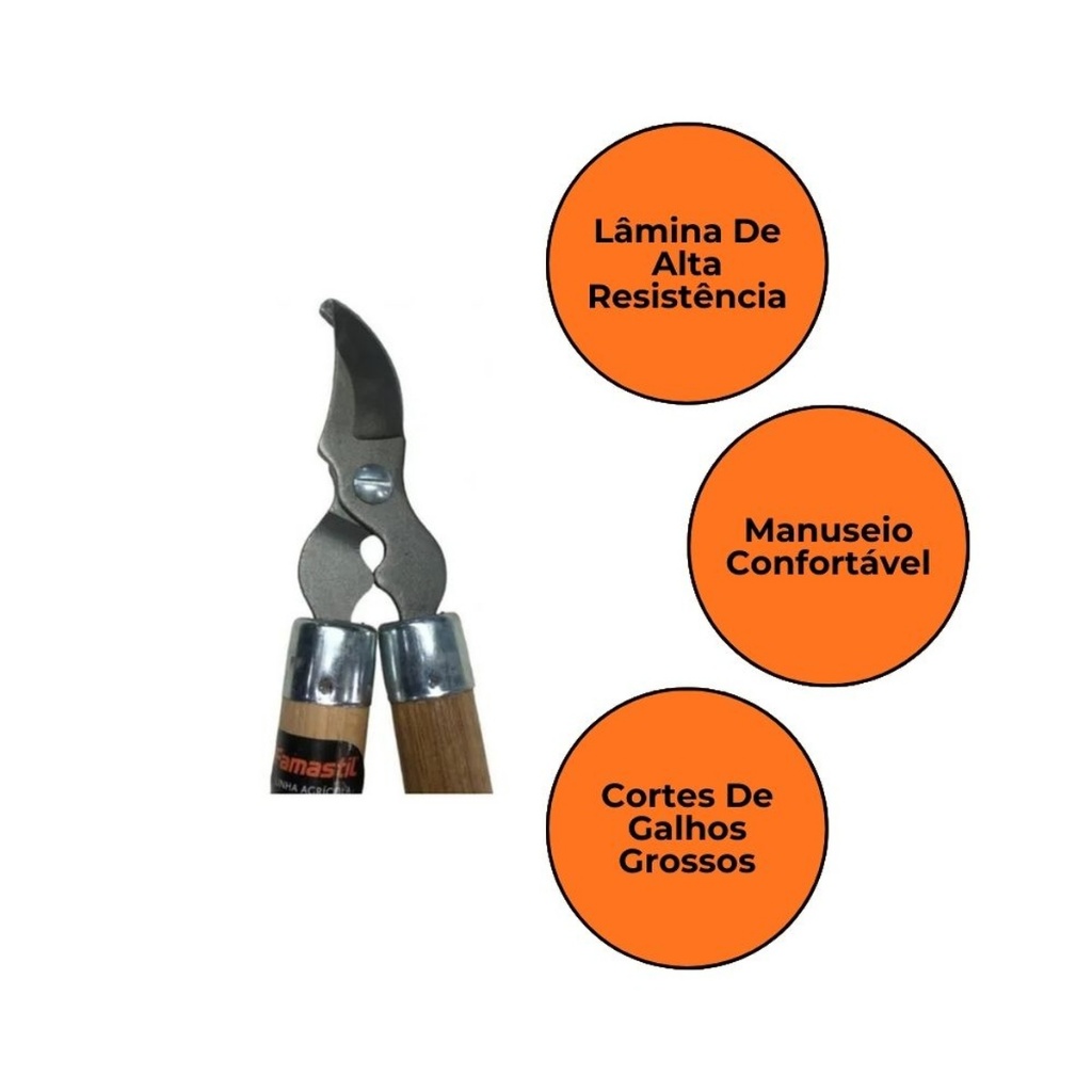 Tesoura Corta Galho Famastil 27” Cabo de Madeira para Poda de Árvores e Arbustos Cabo de Madeira