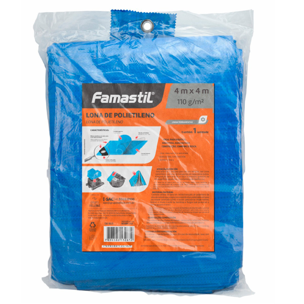 Lona de Polietileno 4x4M Impermeável com Cantos Reforçados Famastil
