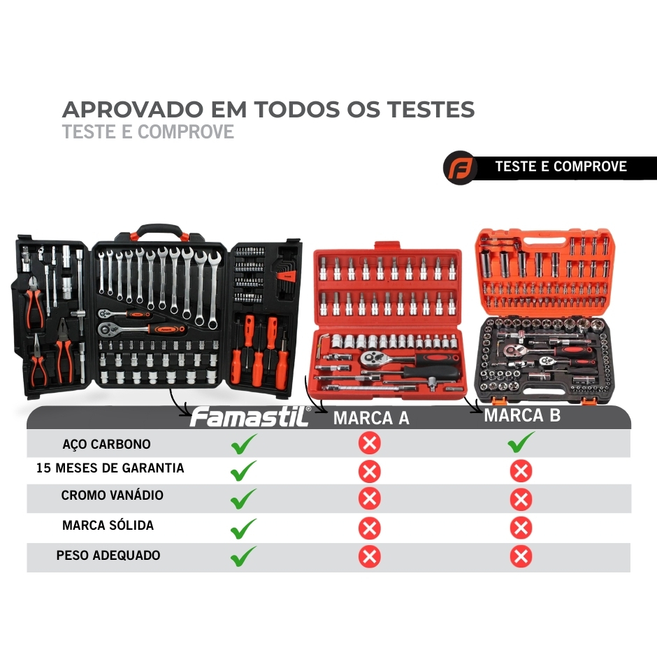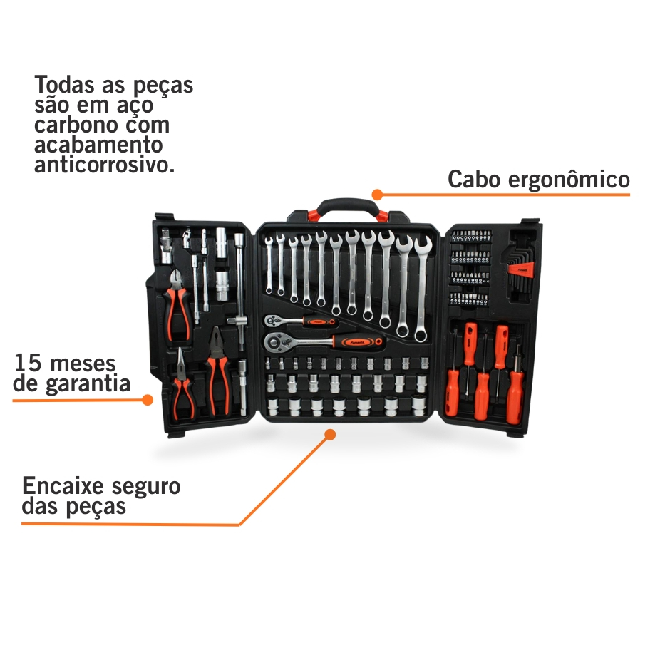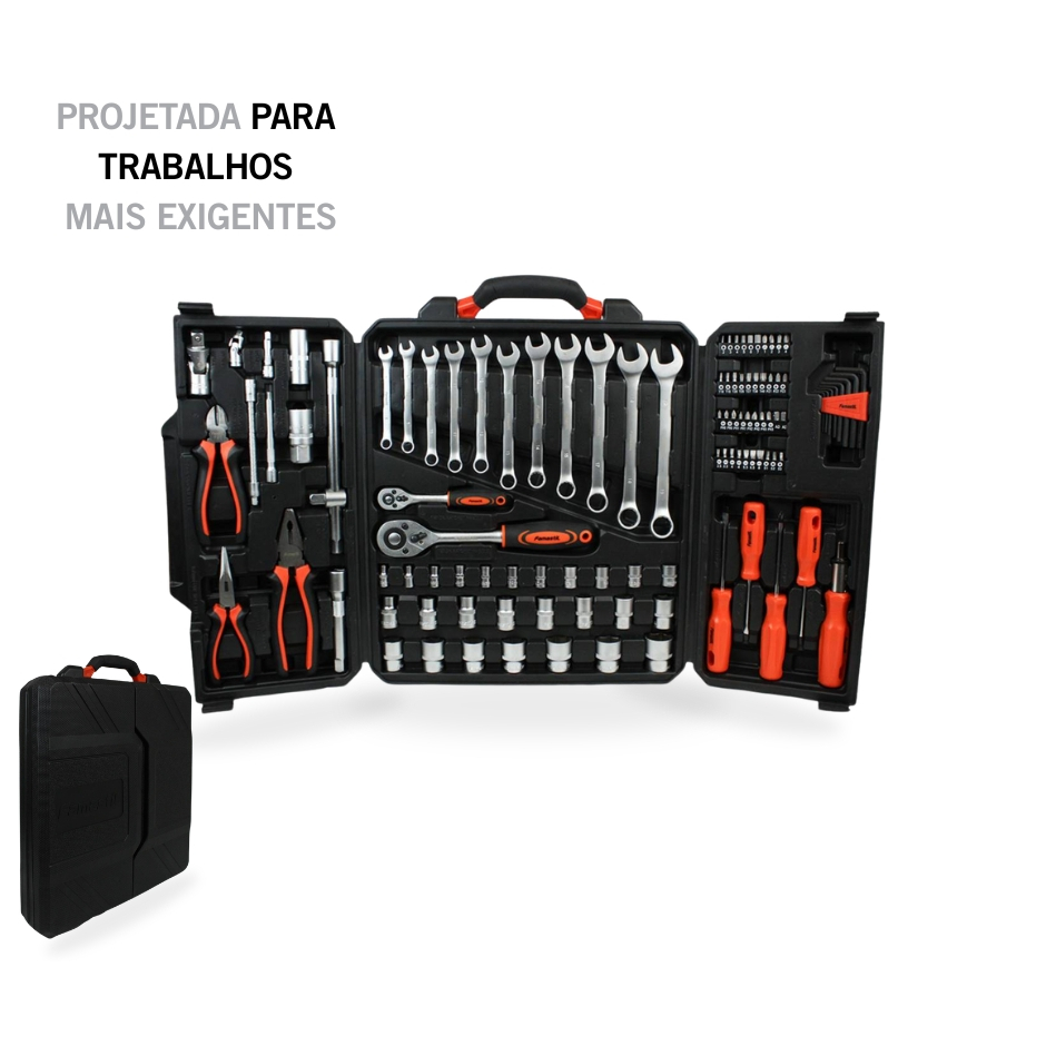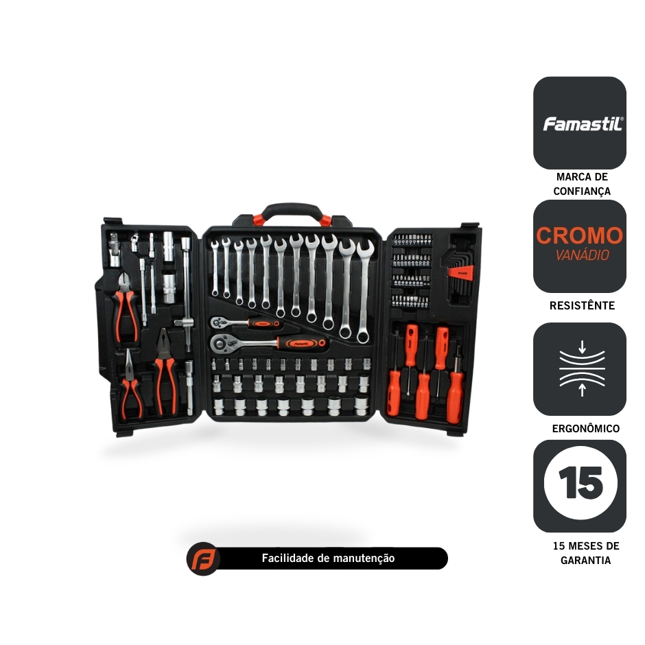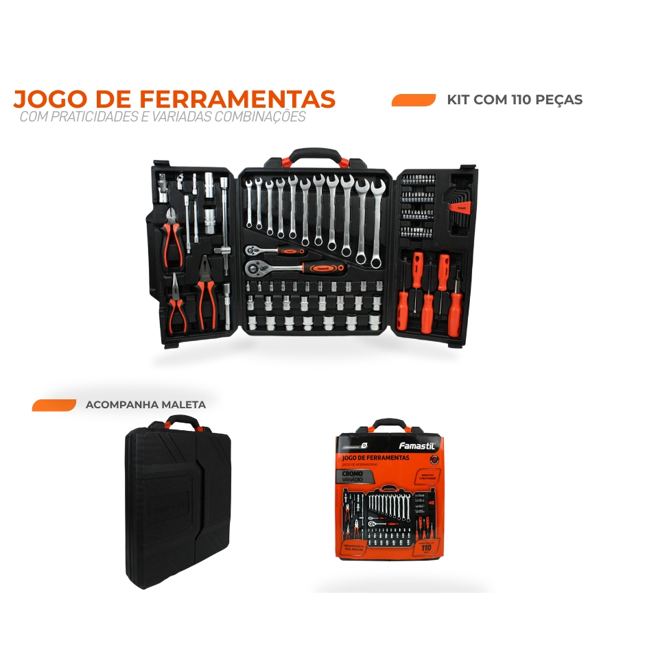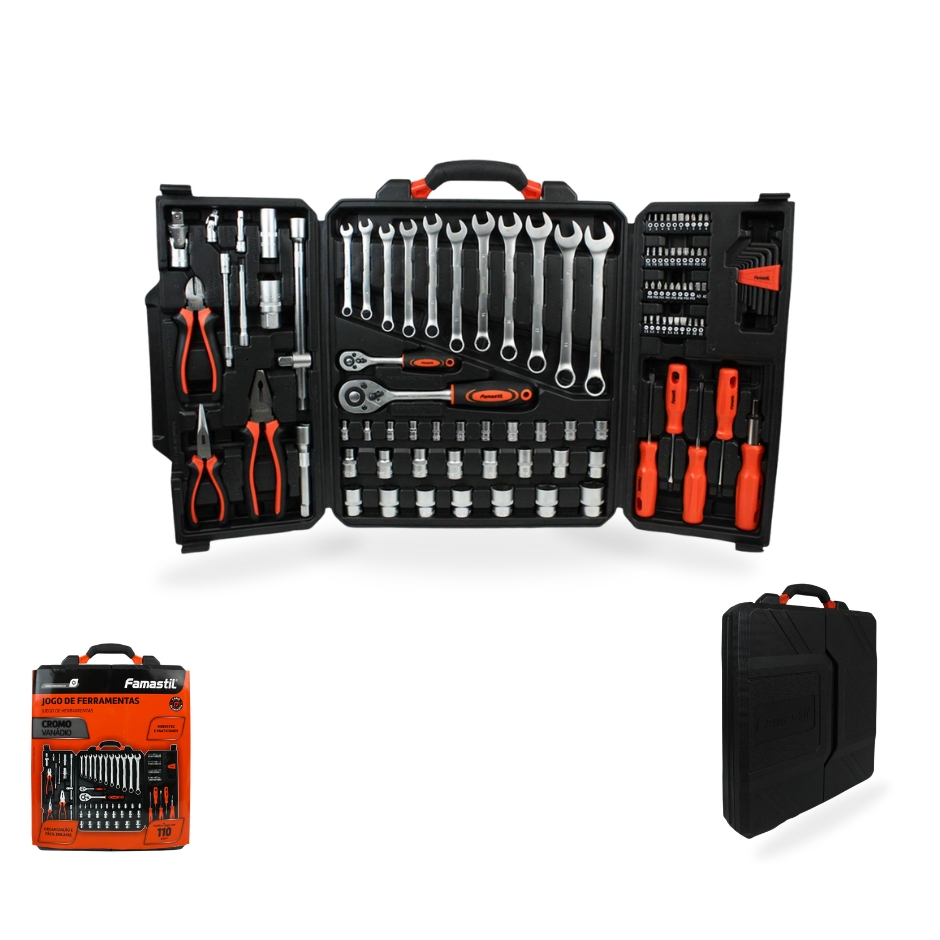 Jogo de Ferramentas Famastil 110 Peças Aço CrV, Catraca Reversível e Estojo Organizador
