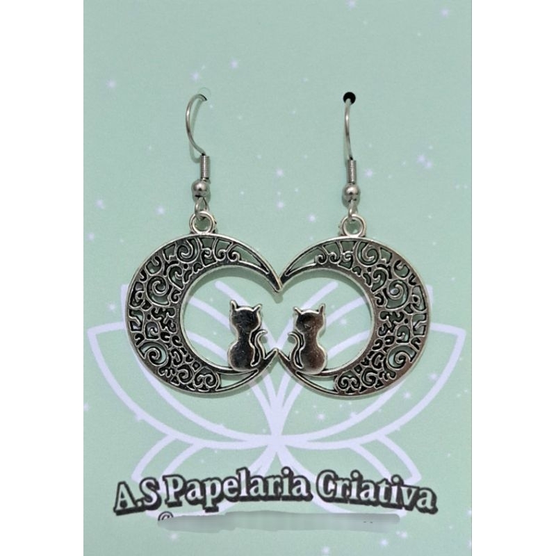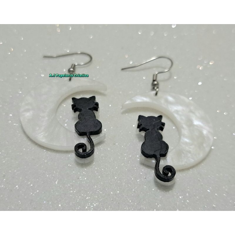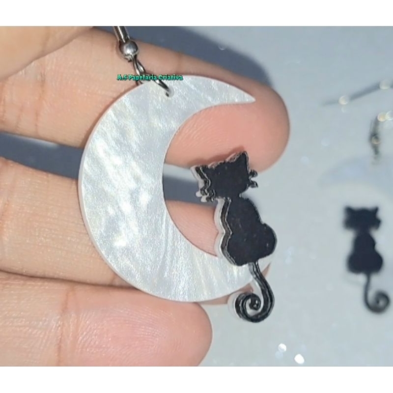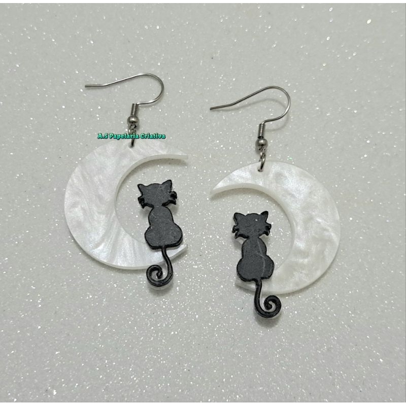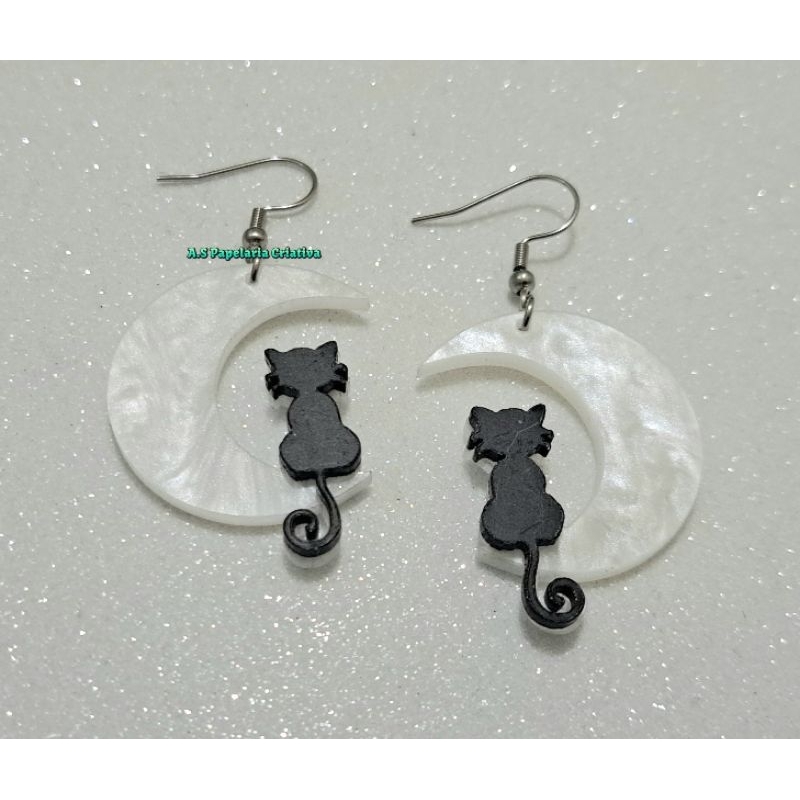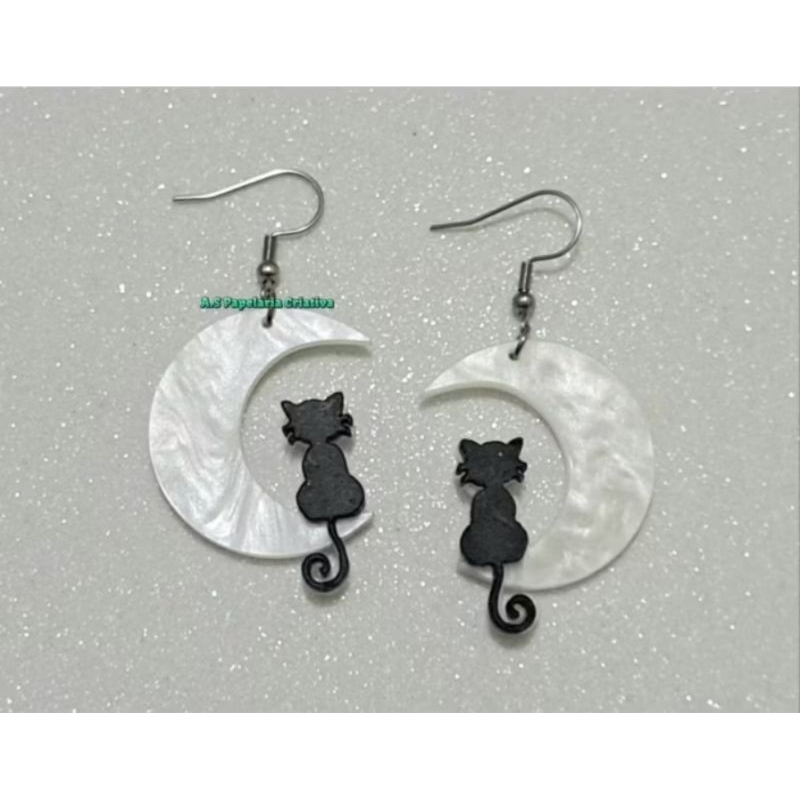 Brinco Lua Gatinho Preto - Aço Inoxidável