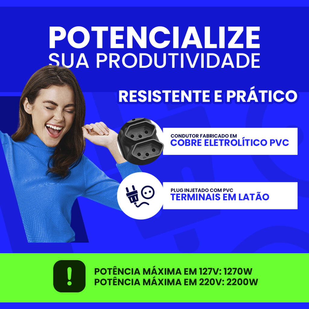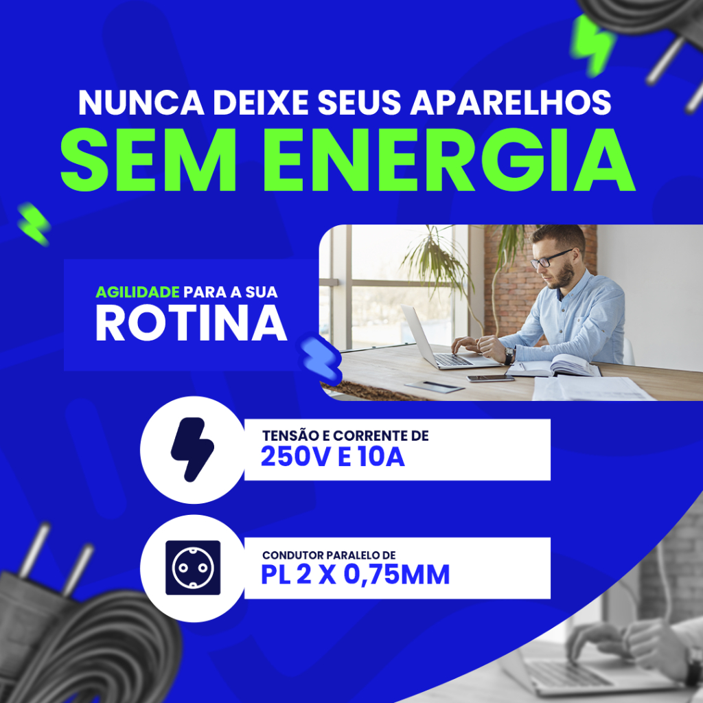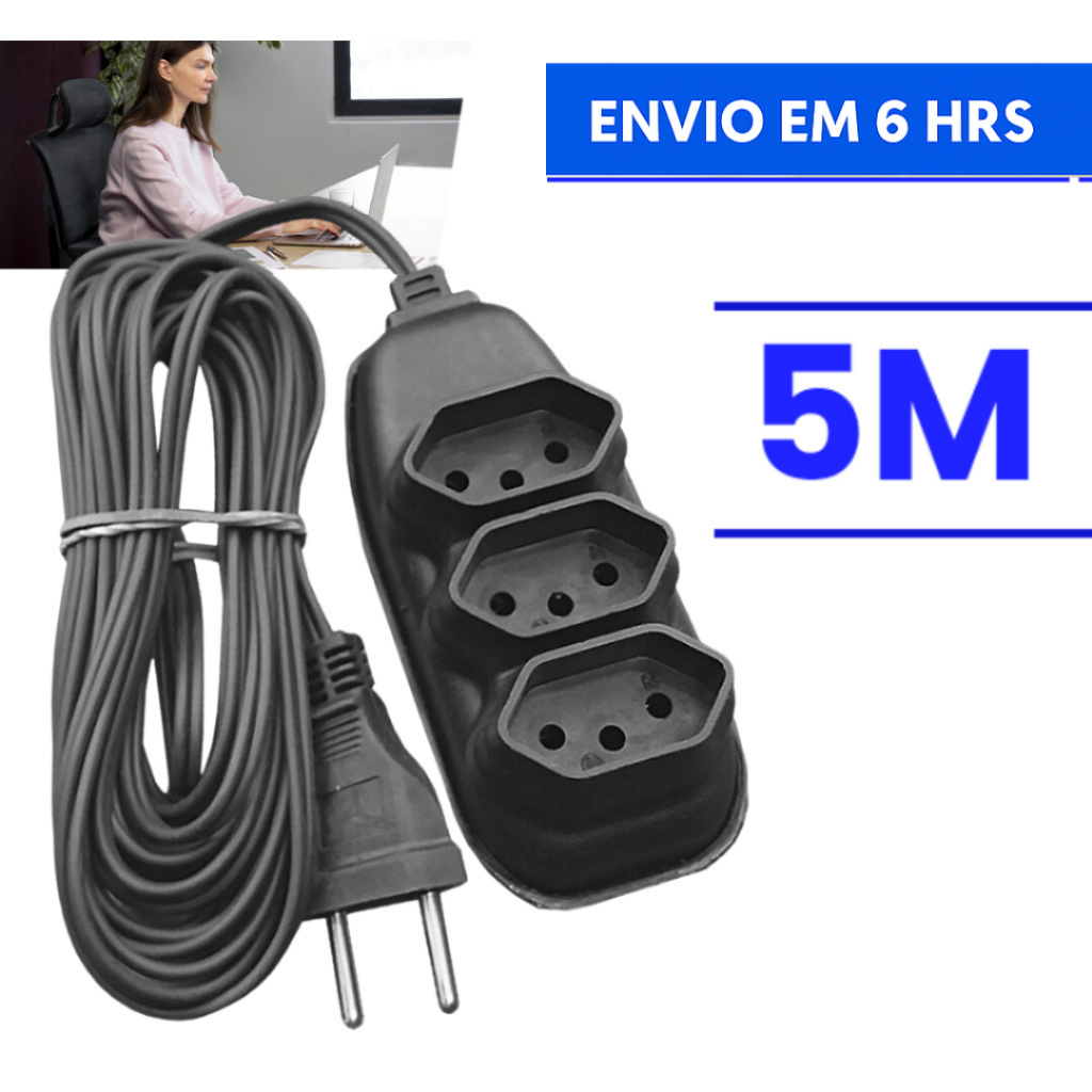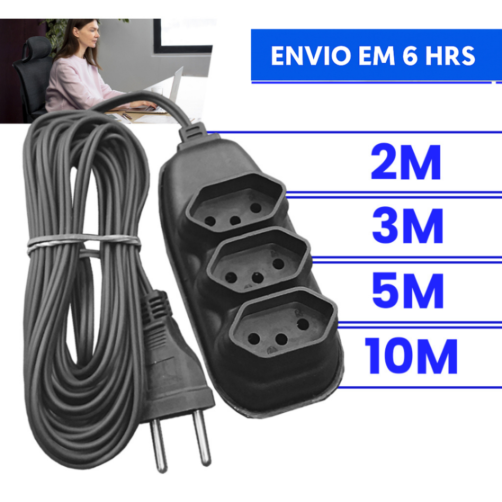 Extensão Elétrica 10 Metros - Bivolt 110/220 10A Tomada Tripolares Preta Resistente