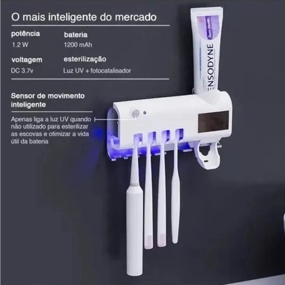 Aplicador Pasta de Dente Dispenser Porta Escovas Com E Sem Esterilizador UV