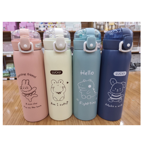 Garrafa Térmica Com Canudo Estampa Animais Bichinhos com Frase - 350ml e 500ml