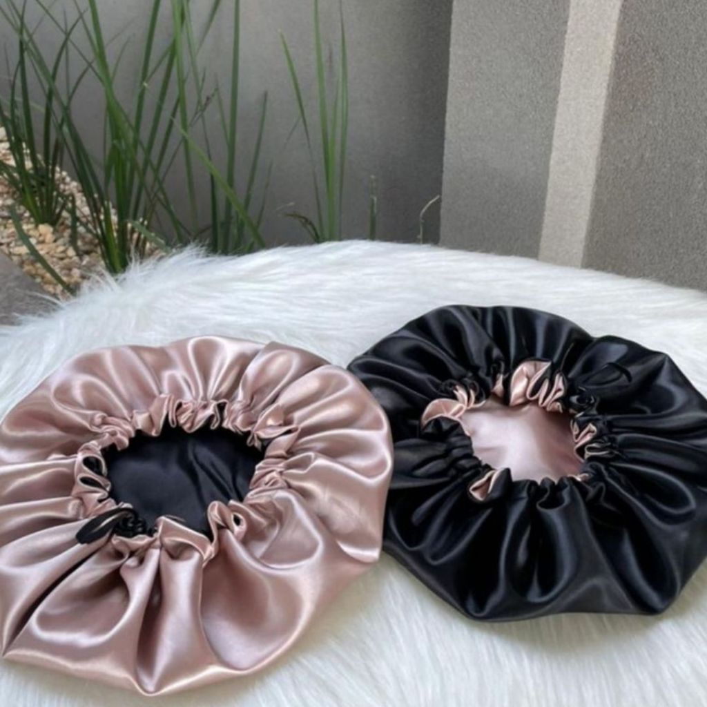 Kit 3 Touca de Cetim Dupla Face com Regulador + 3 Xuxinhas de Cabelo