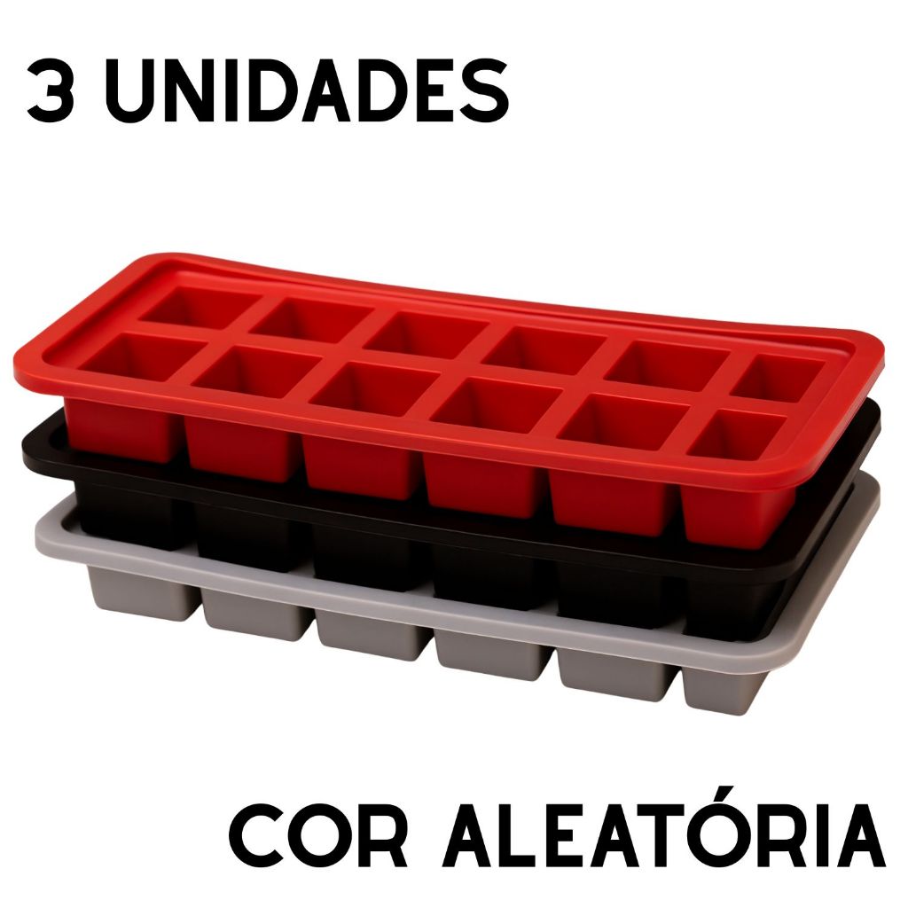 Kit 1 / 2 / 3 Forma de Gelo Quadrado Silicone com 12 Cavidades Grande Bebida Gelada Fácil de Soltar