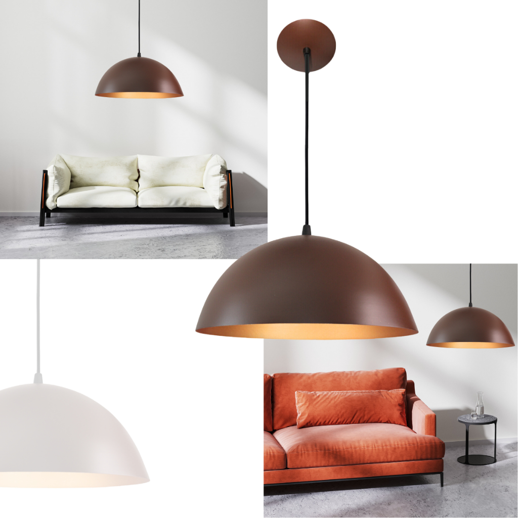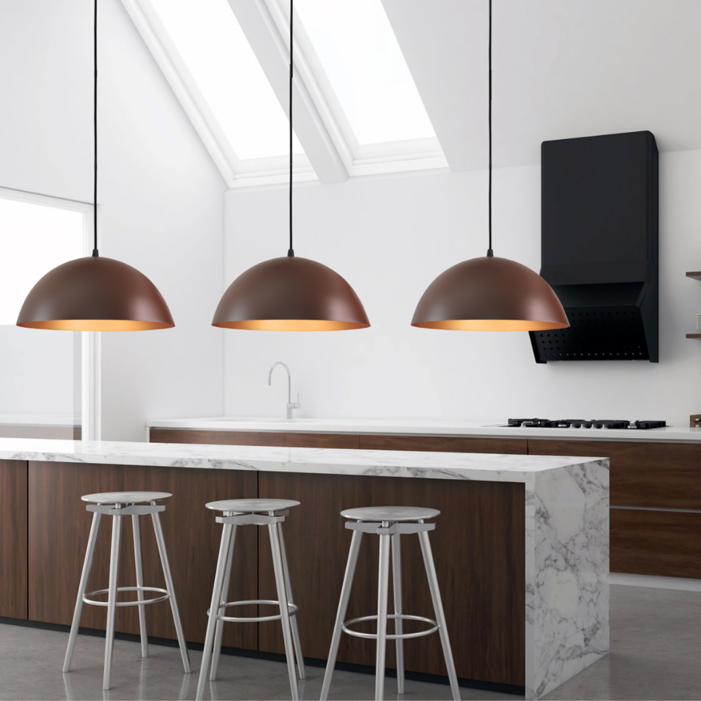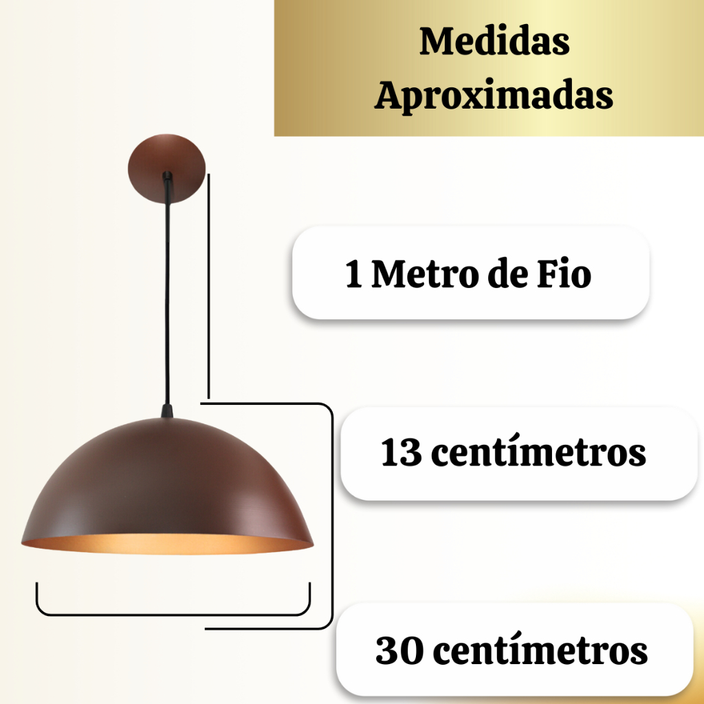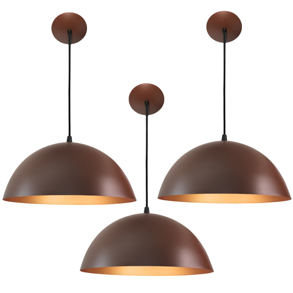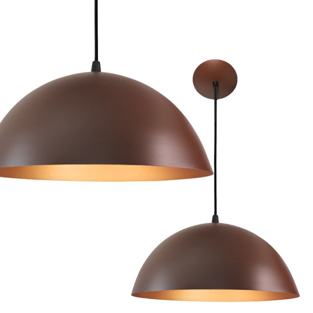 Lustre Pendente Meia Lua 30cm Marrom/Cobre Decoração Elegante Sala Cozinha Quarto