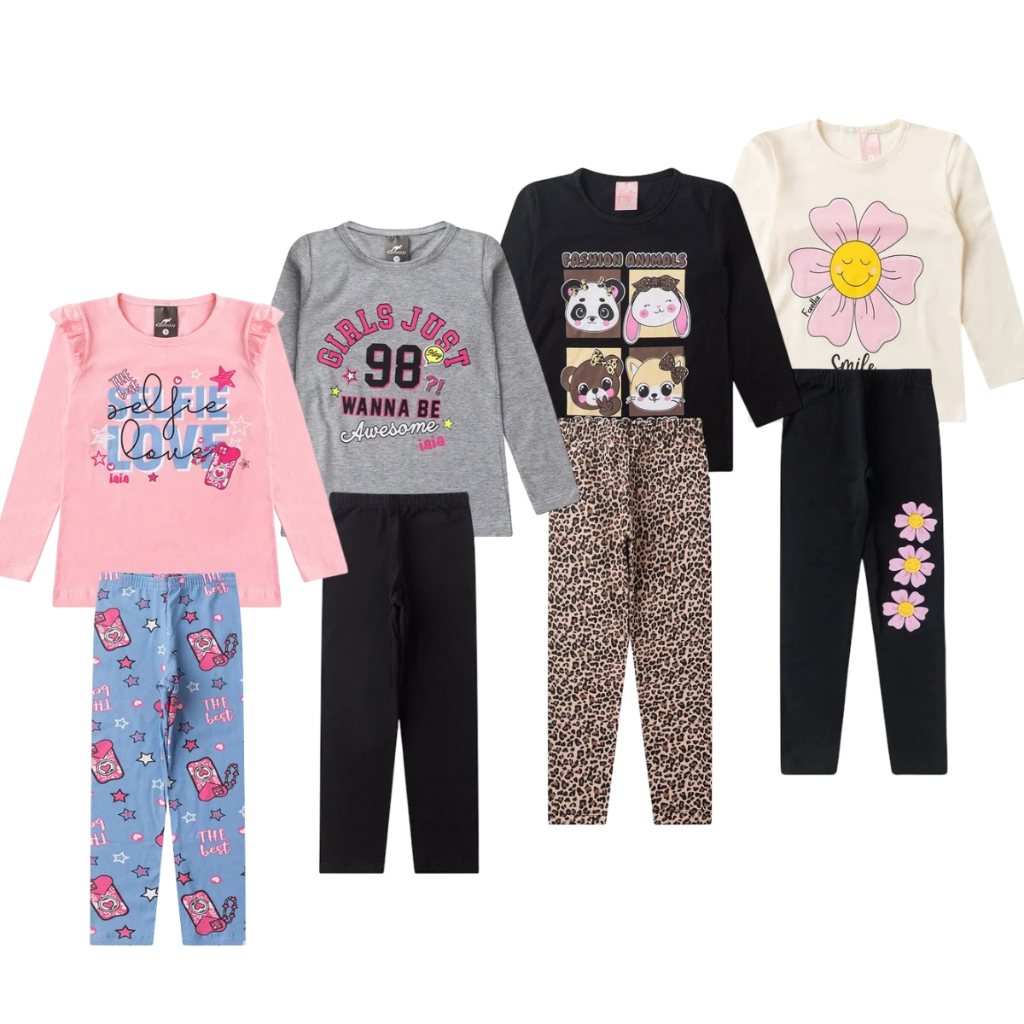 Kit 4 peças de Roupa Infantil Menina Meia Estação Inverno