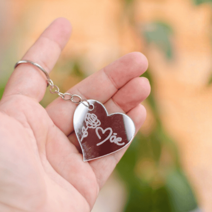 Kit Chaveiro Personalizado Nome Logo Coração em Acrílico Espelhado