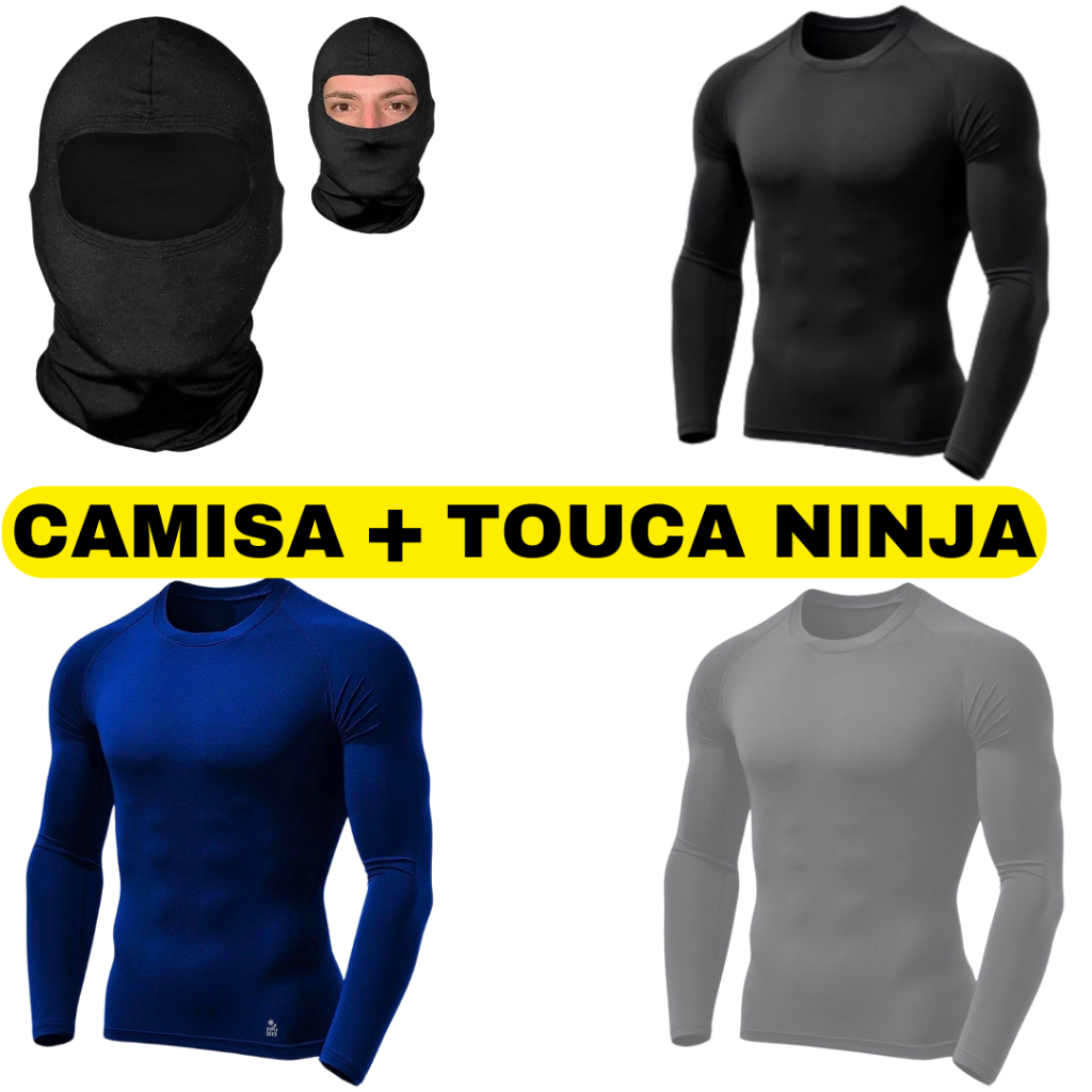 Kit Camisa Térmica Masculina + Touca Ninja Toca Preta BalaClava