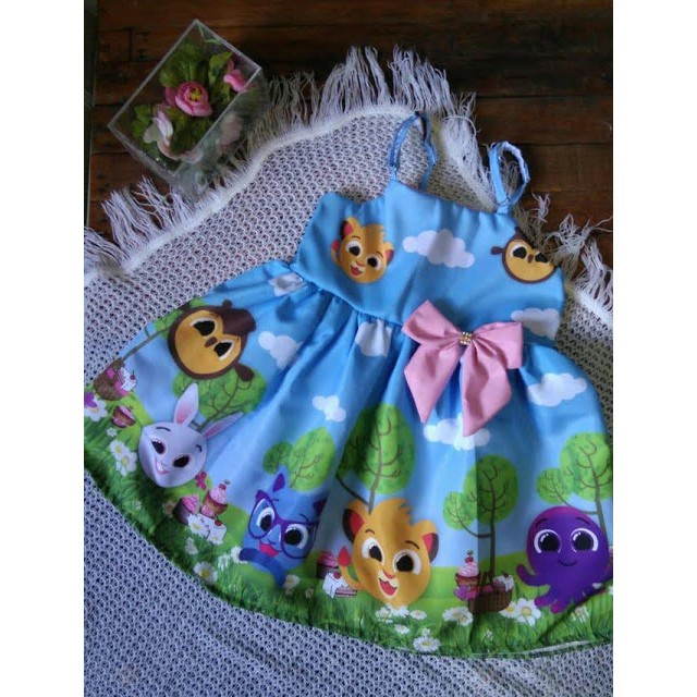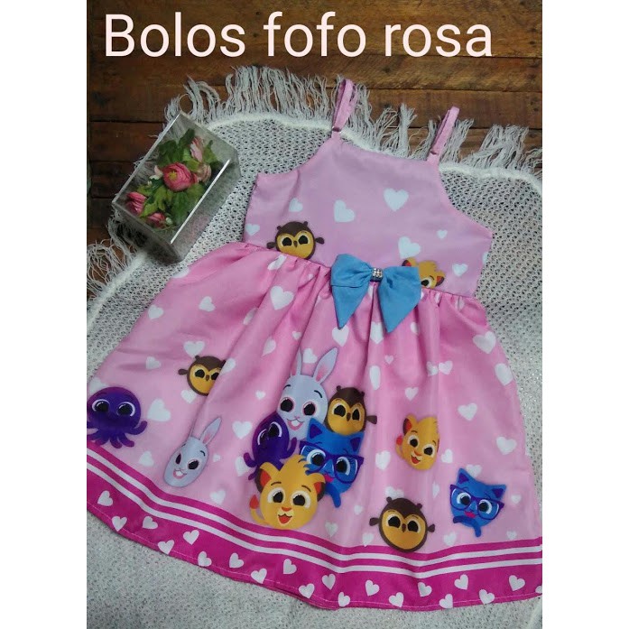 Vestido Alcinha Bolofofos Bolo Fofos Azul Rosa Luxo Tematico Infantil Pronta Entrega