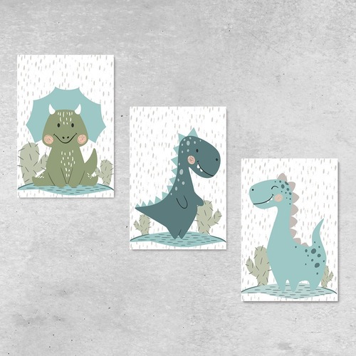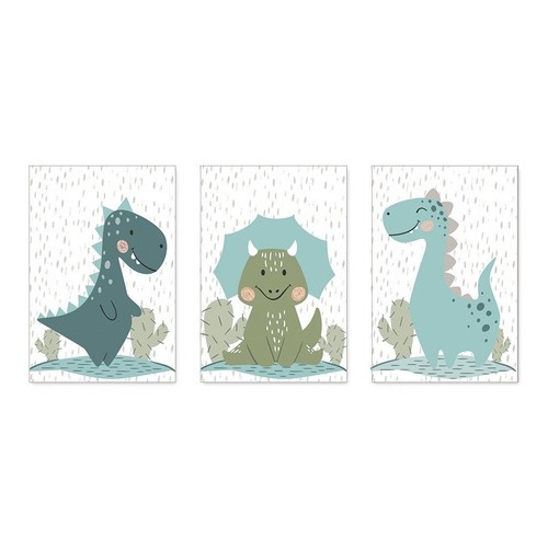Quadro Decorativo Infantil Quarto Menino Menina Dinossauro Chuva