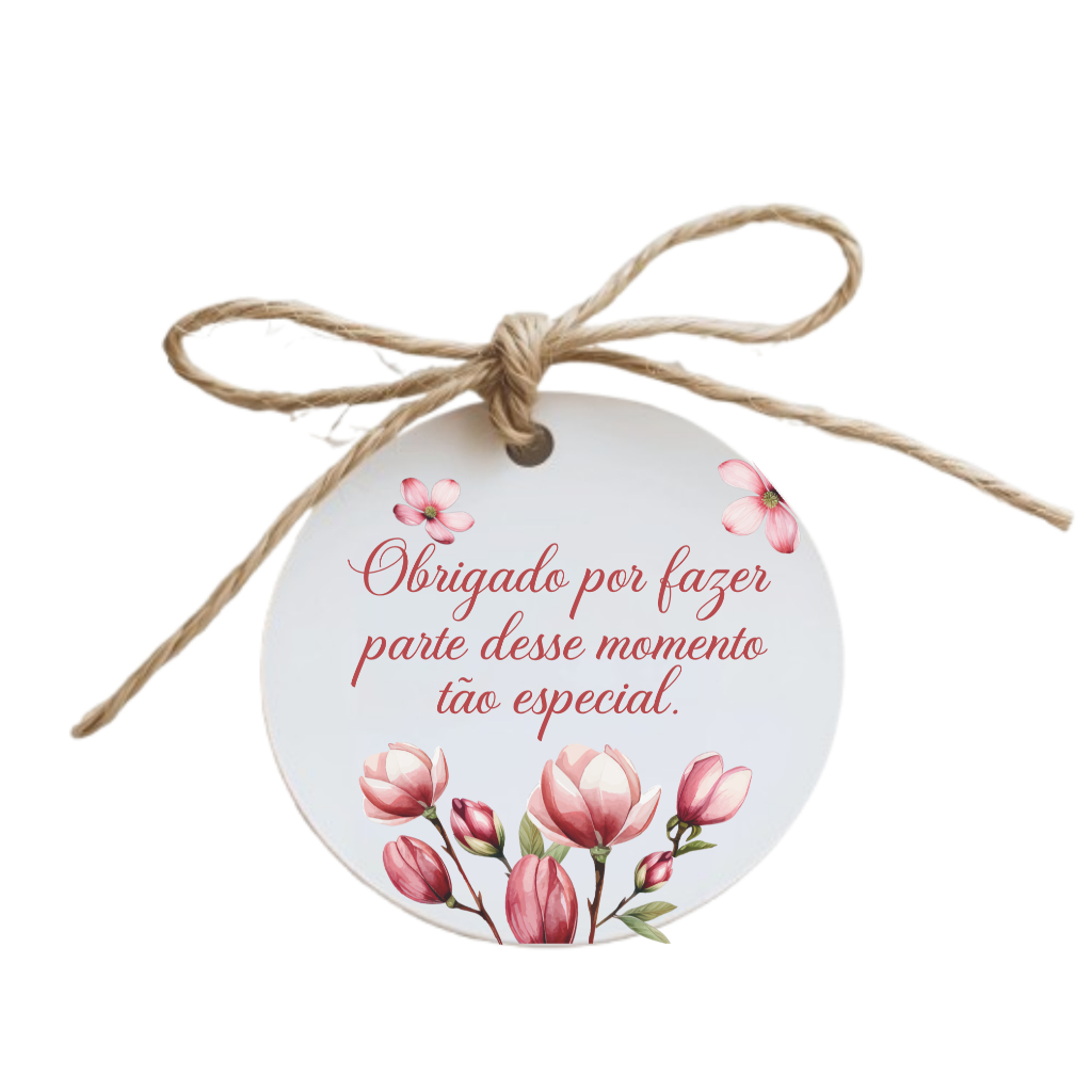 Tag Floral 4 cm com furo frase de Agradecimento - Promoção !!!