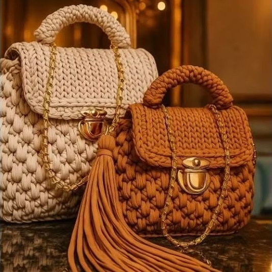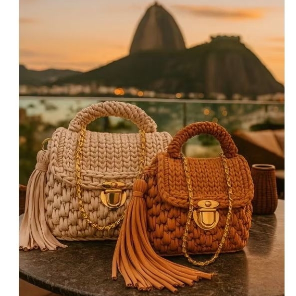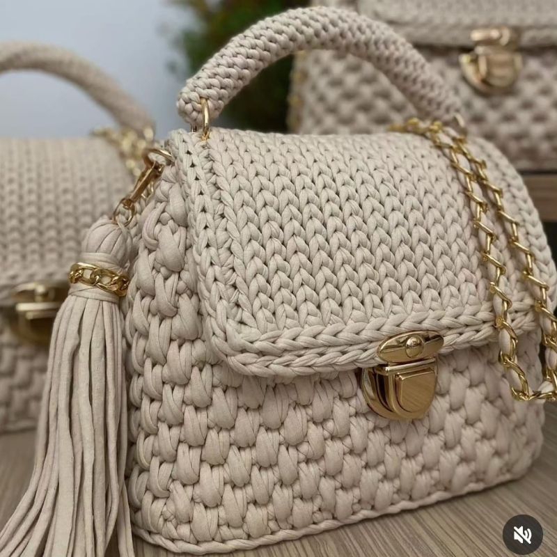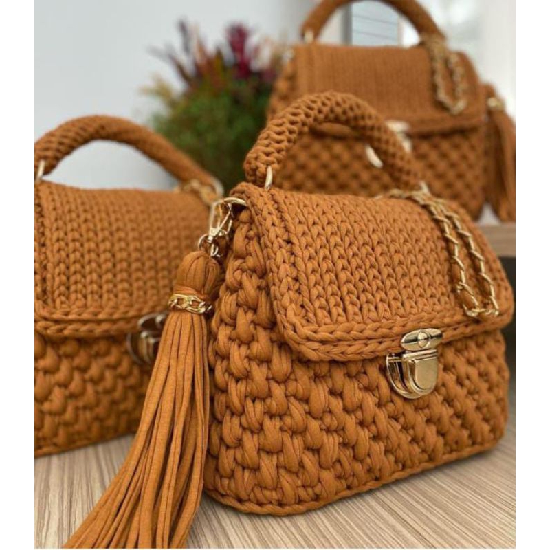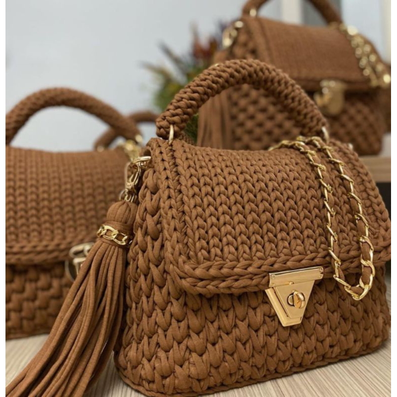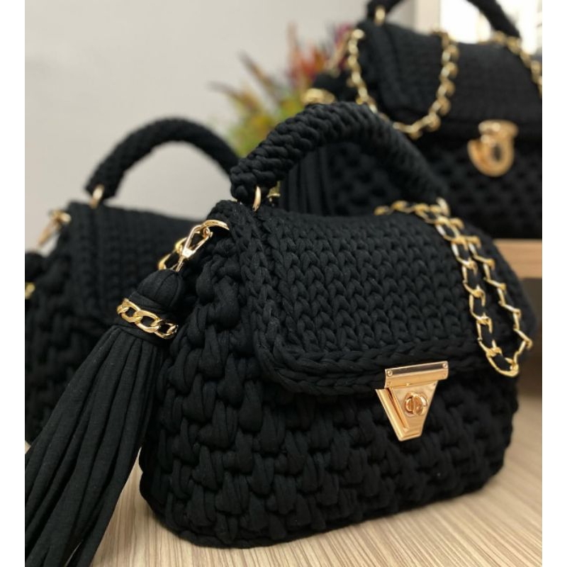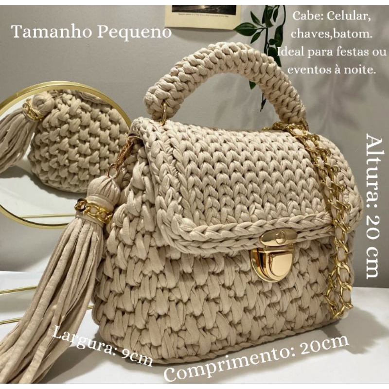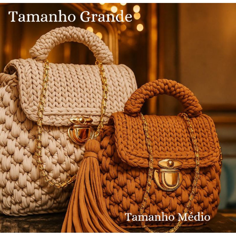 Bolsa de Ombro Feminina Artesanal em Crochê Premium | Alça Corrente Dourada | Pronta Entrega