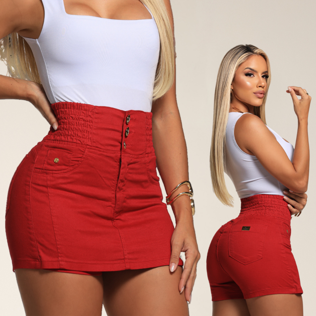 Short Saia Cintura Alta Feminino Elastano Lipo Modelador Branca Versátil Premium