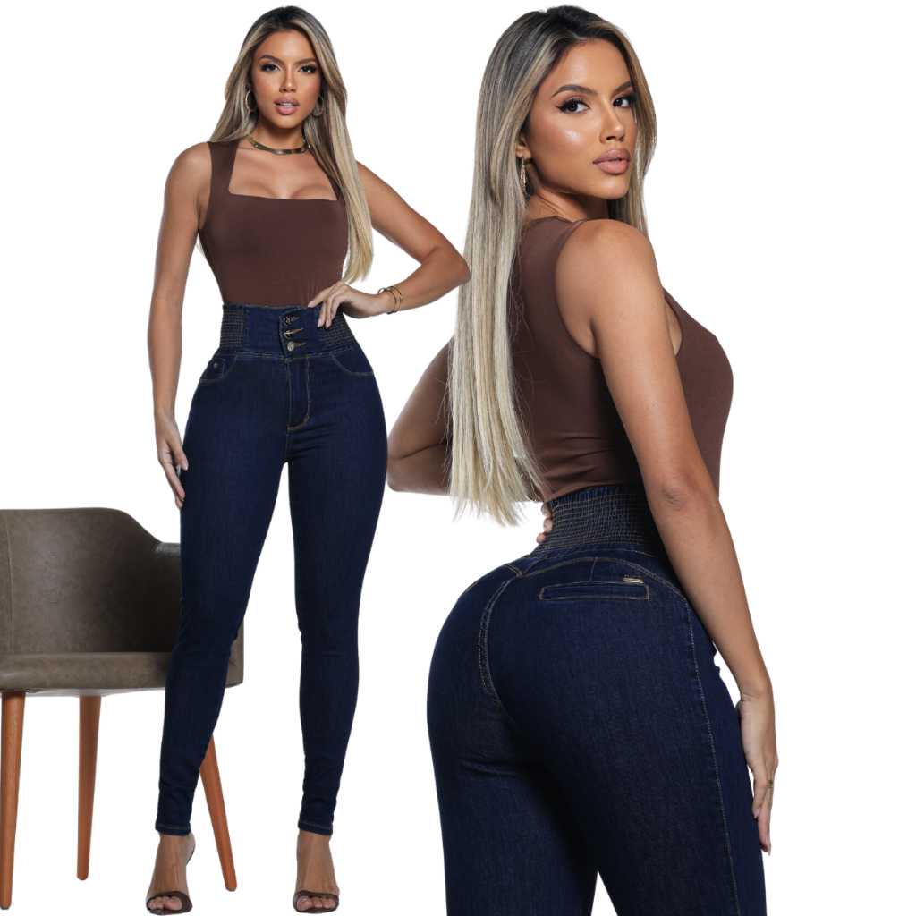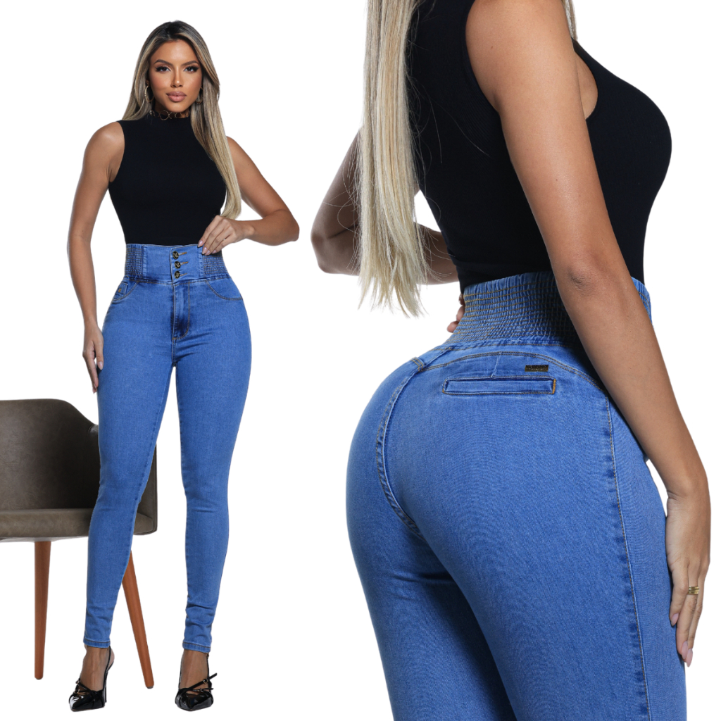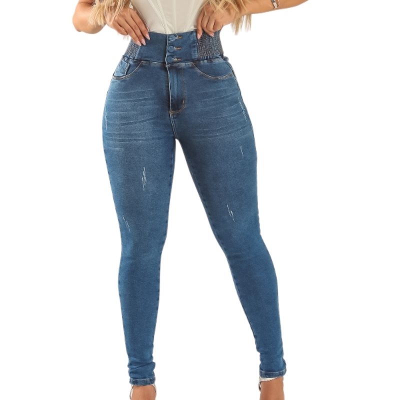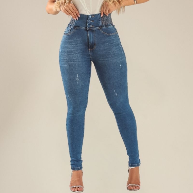 Calça Modeladora Feminina Jeans Cintura Alta Com Laycra Premium