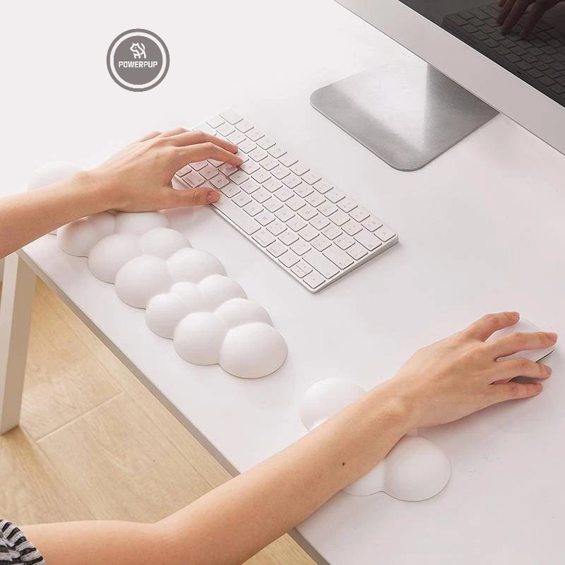 Confortável Tapete De Descanso Para O Pulso Do Mouse Em Forma De Nuvem Teclado Almofada De Apoio Espuma De Memória PU Inferior Couro Adequado Escritório PC