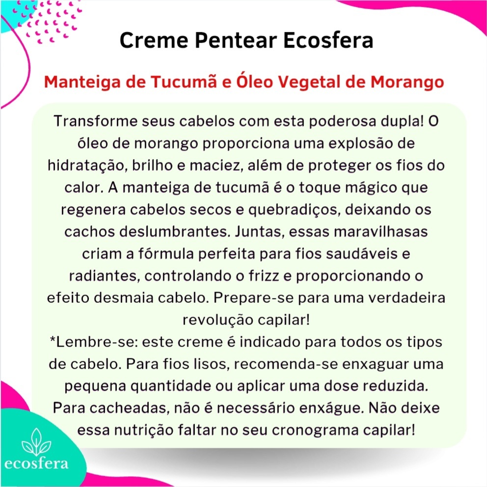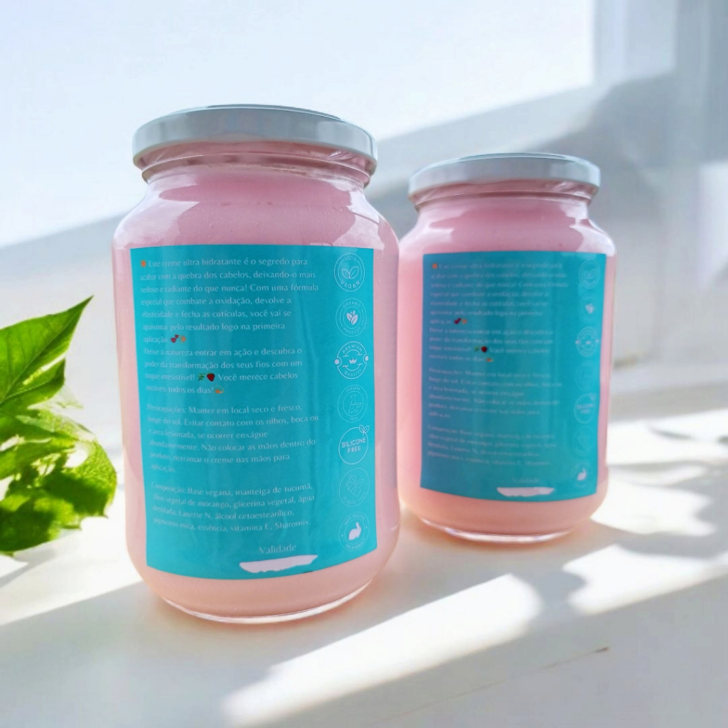 Creme de Pentear, Leave in- Máscara Hidratante - Morango e Tucumã - Cabelos Nutridos - 98% Natural - Vegano - 600ML