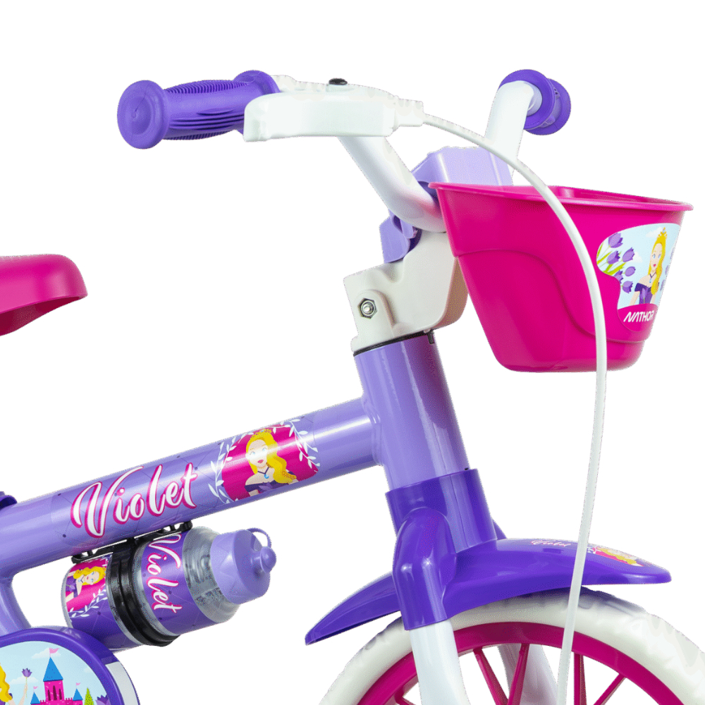 Bicicleta Infantil Nathor Violet Aro 12 Freio Tambor Com Rodas De Treinamento Com Cesta e Garrafinha
