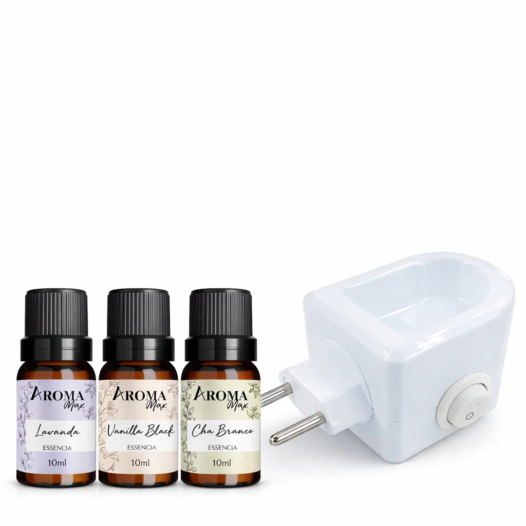 Kit Difusor Tomada Bivolt + 3 Essências Concentradas 10ml Escolha Seu Kit Vários Aromas Perfume