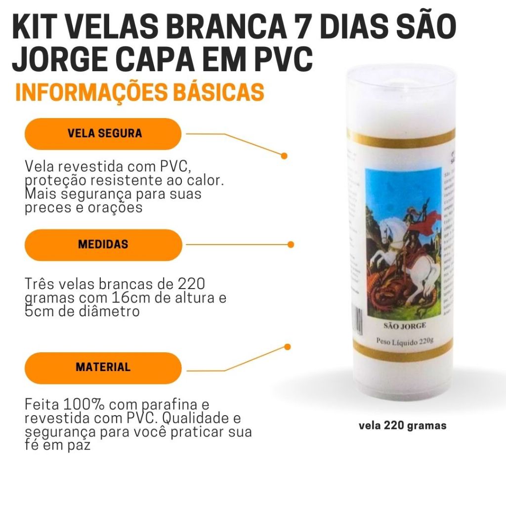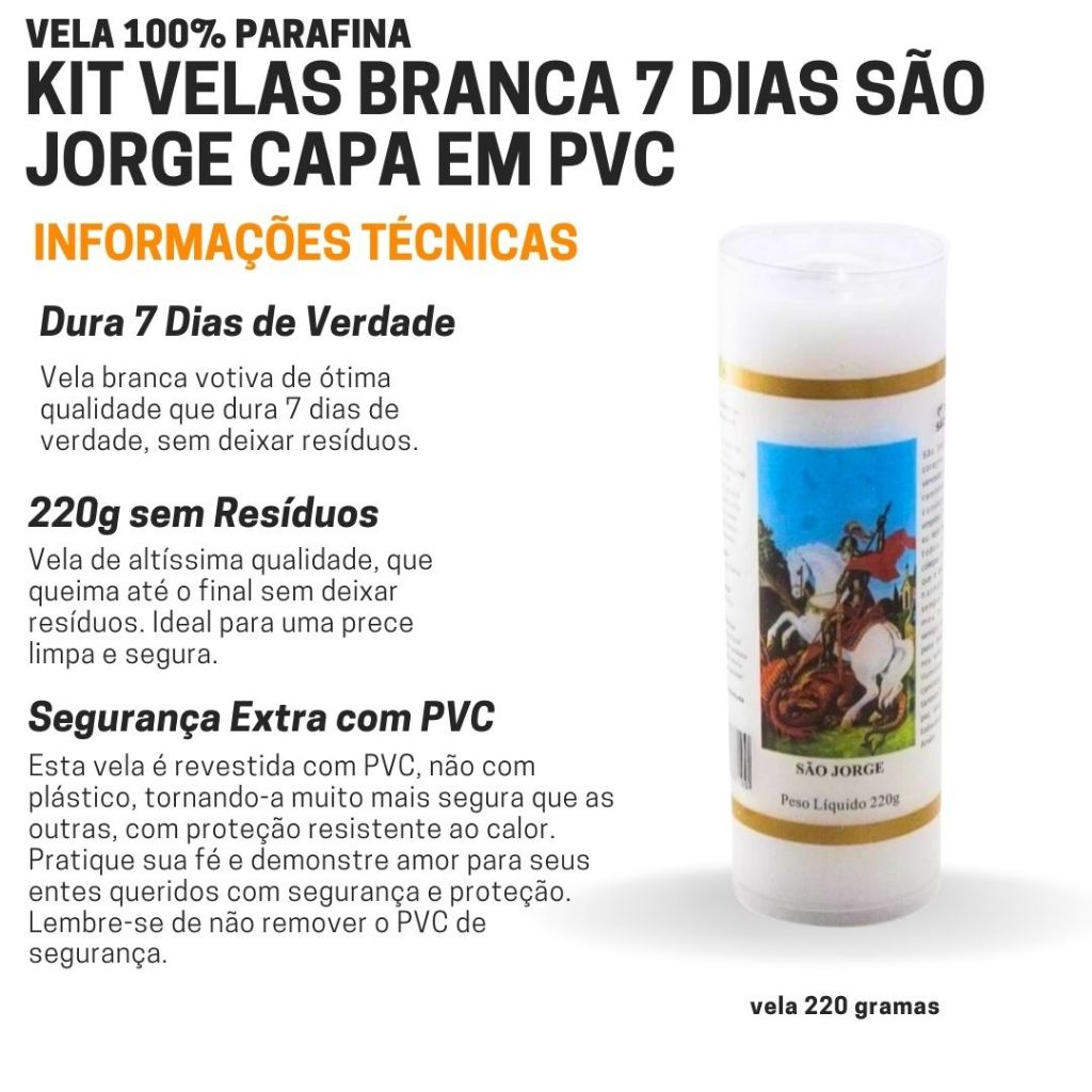 Vela Votiva 7 Dias Santo São Jorge 220g vela Branca Capa em PVC ante chamas Proteção ao calor NOVENA
