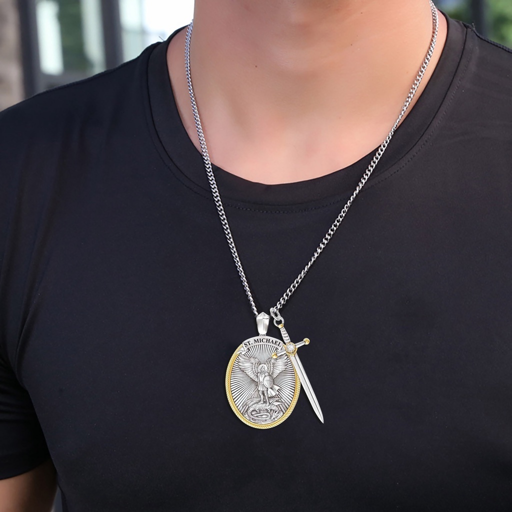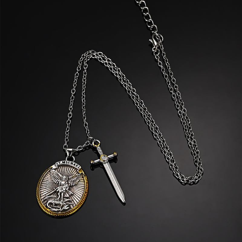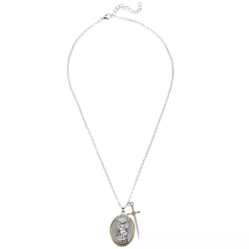 Kit2 Colar Mitologia Ocidental São Miguel Anjo Fé Amuleto Jóias Colar Arcanjo São Miguel Me Protege Santo Escudo Prote