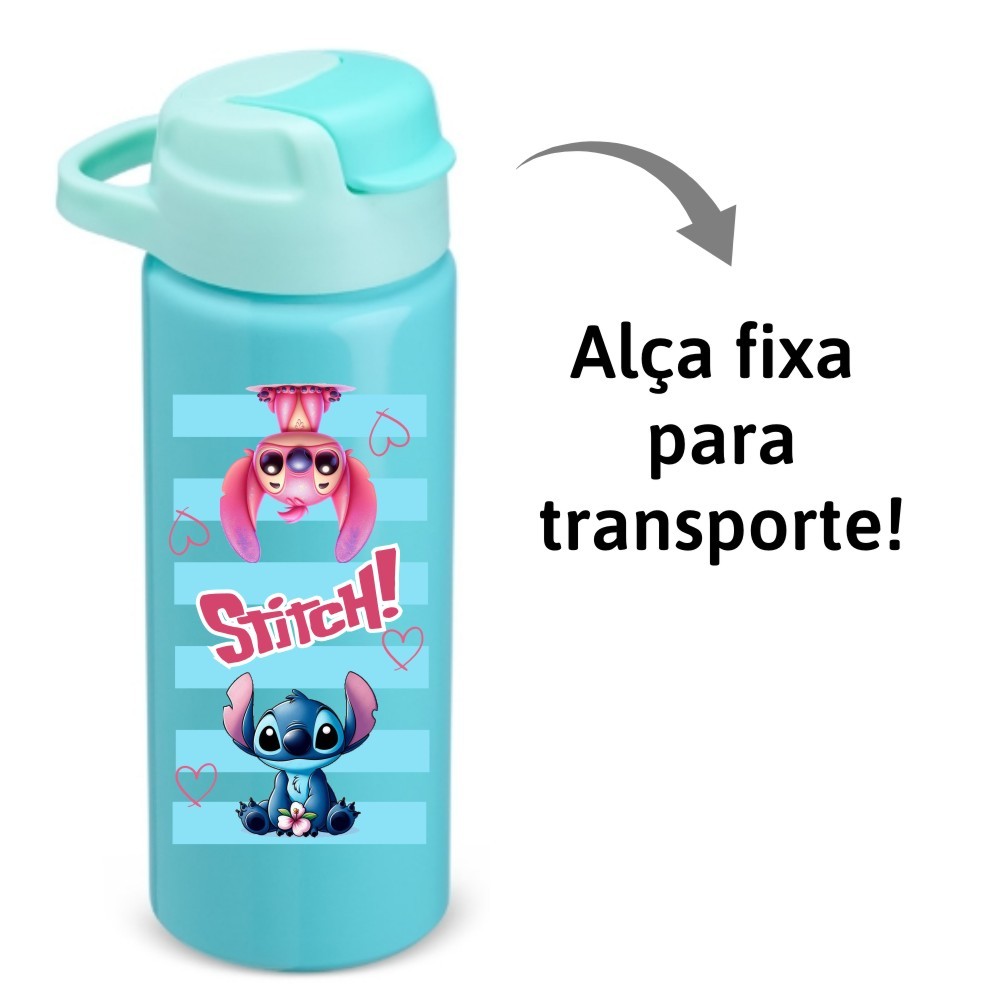 Squeeze Aluminio com Canudo 600 ML ideal para Hidratação Escolar Stitch