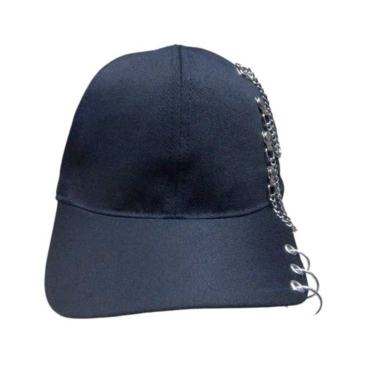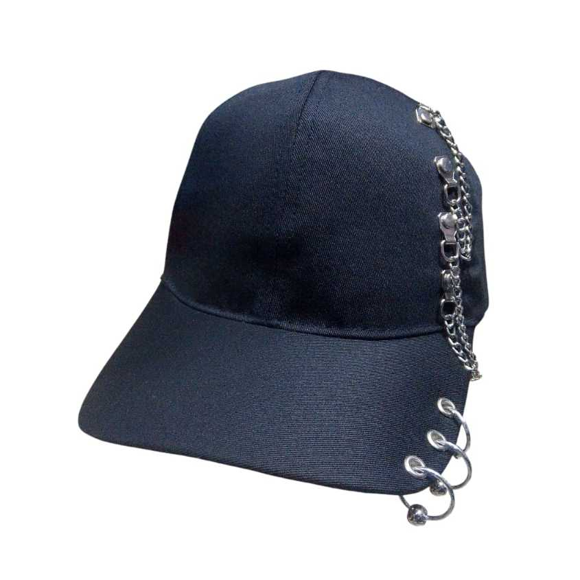 BONÉ PRETO KPOP COM ARGOLA E CORRENTE ABA CURVADA