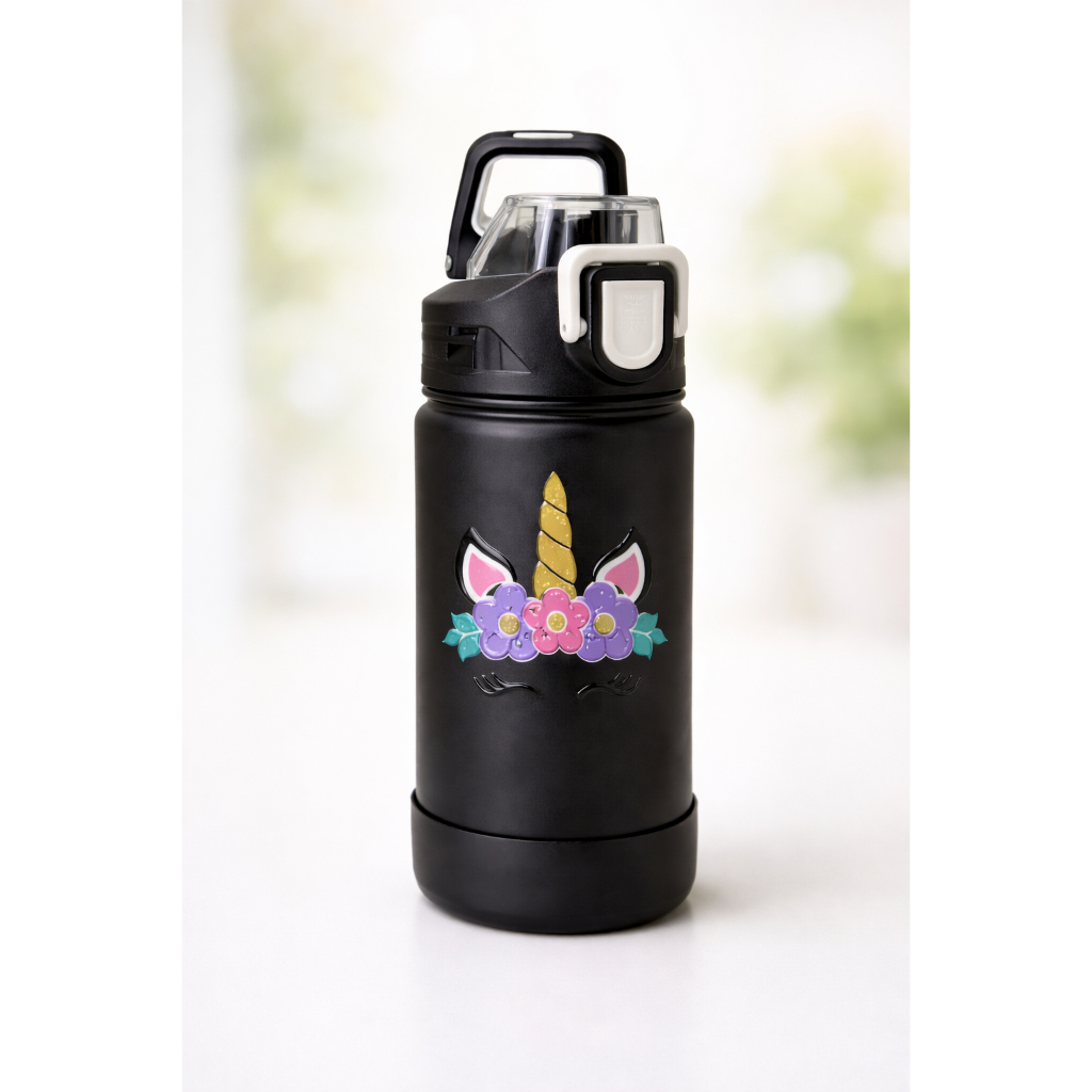 Garrafa Térmica Inox Infantil 350 ml – Base de Silicone Tampa Antivazamento Dryz Botão de Destravar