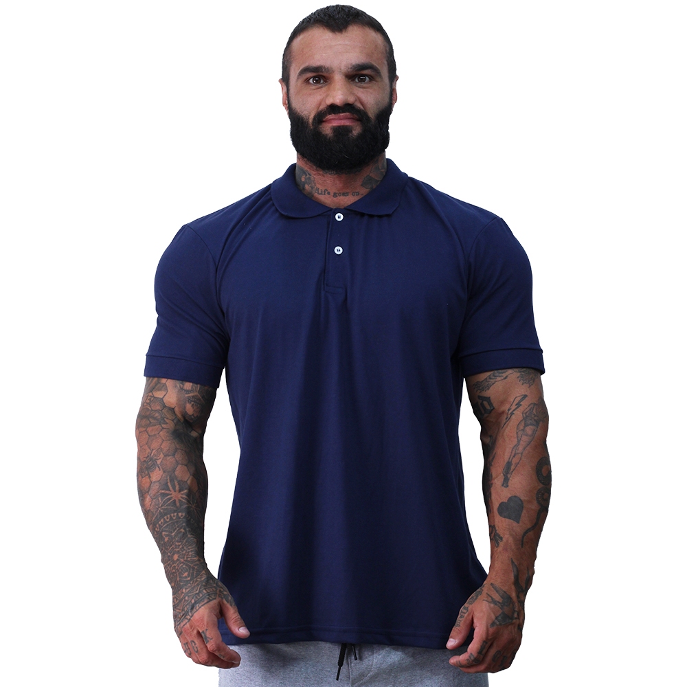 Camisa Gola Polo com Punho Masculina Piquet 50%Alg 50%Pol Premium Penteada MXD Conceito Preta Branca