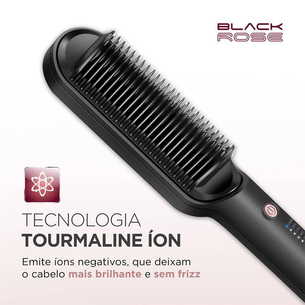 Escova Alisadora Black Rose Mondial Preto e Rose 36W EA-07