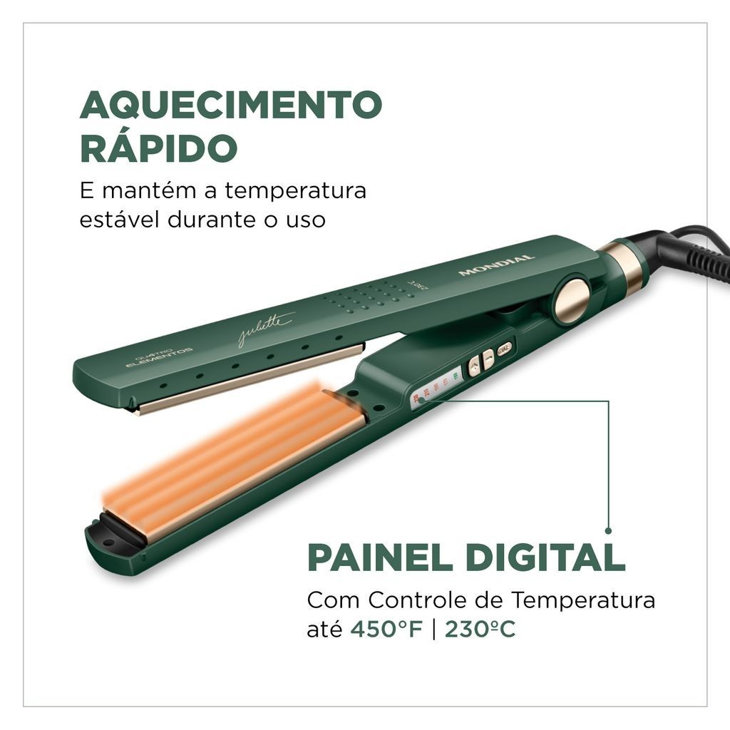 Prancha Alisadora By Juliette Mondial Verde Oliva 60W Bivolt - P-JU-02