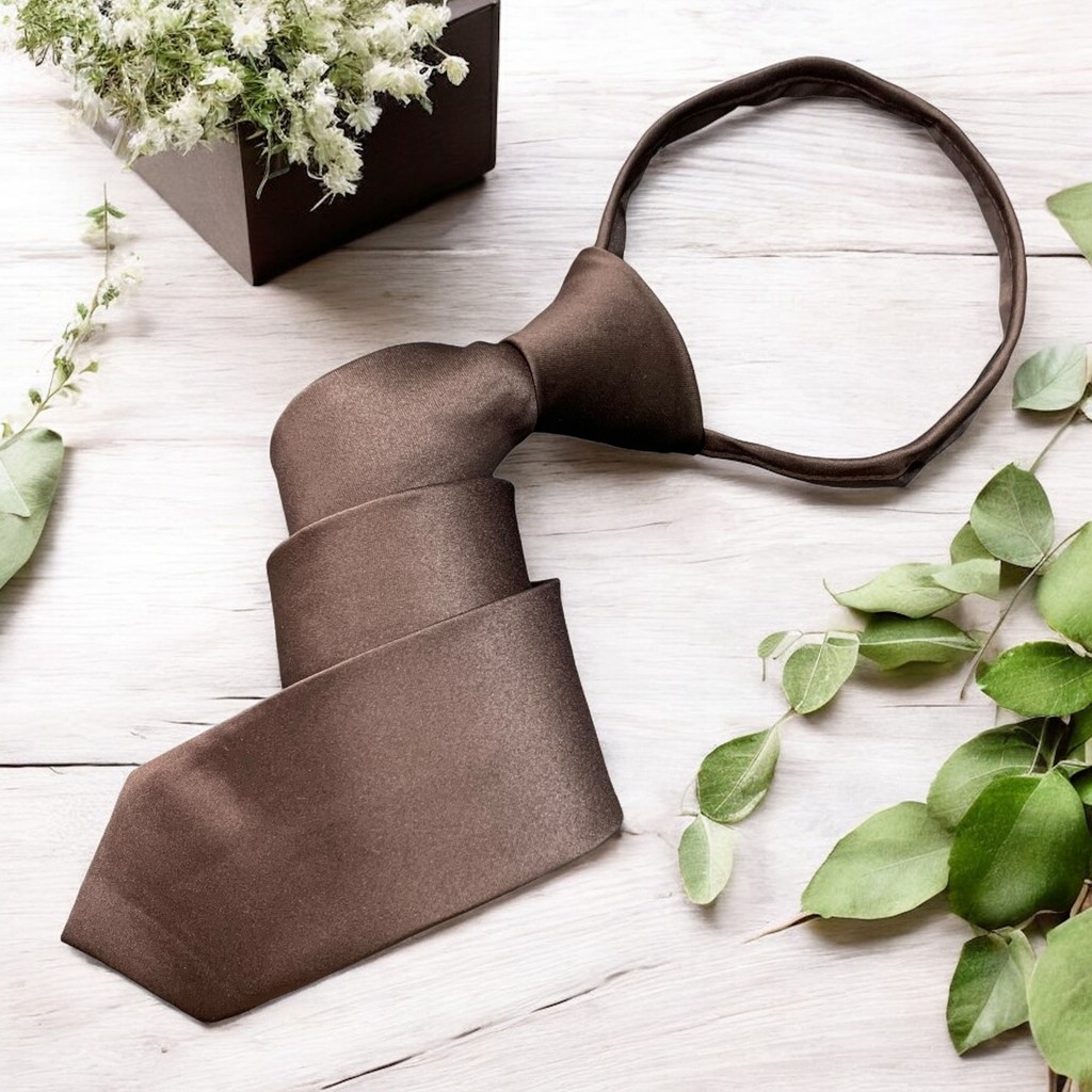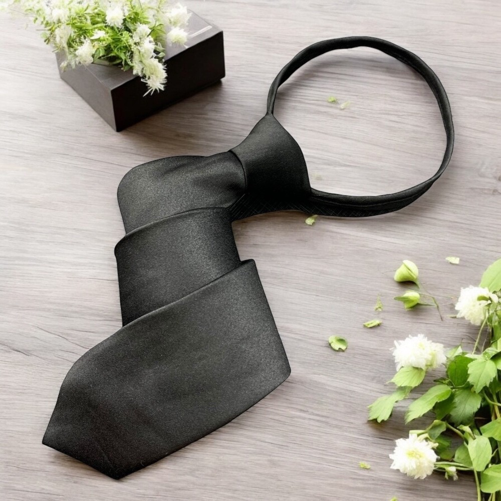 Gravata Masculina Lisa Fosca com Zíper Ajustável Social Formal Fácil de Usar