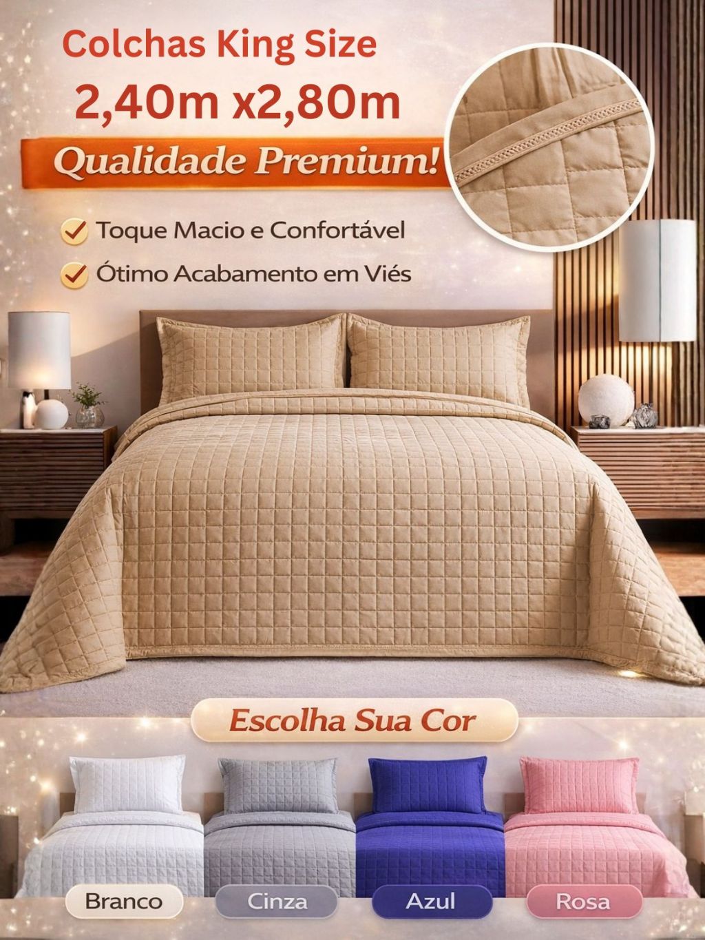 Colcha Cobre Leito King Size 2,40 x 2,80