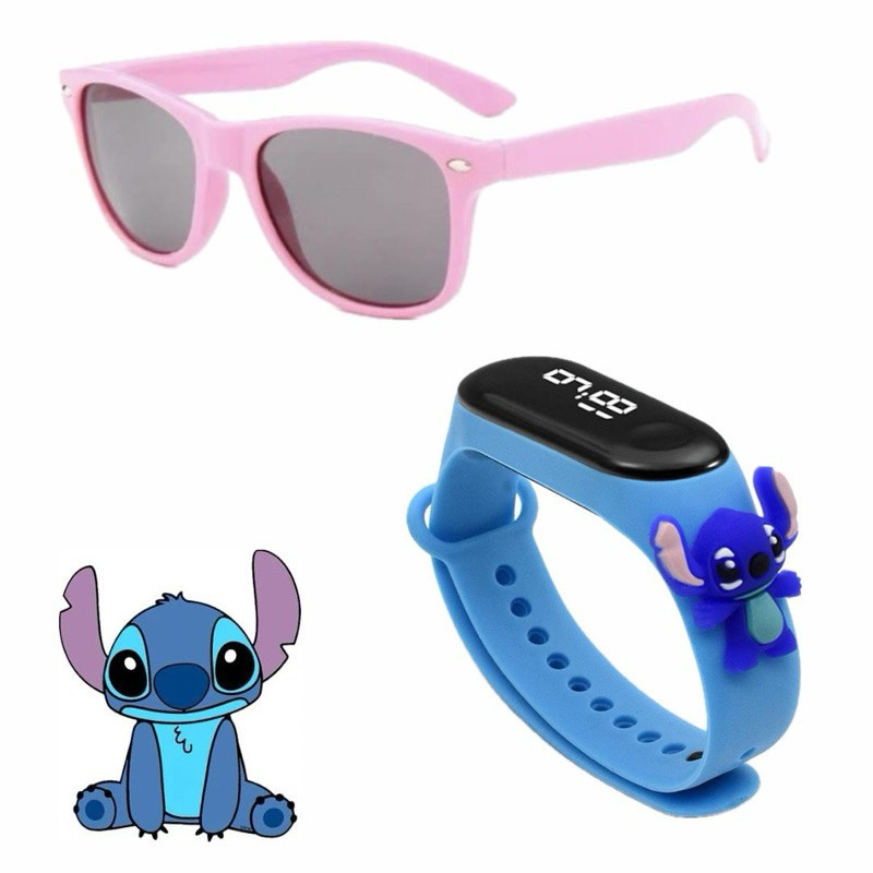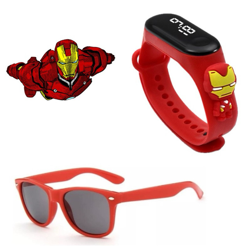 Relógio Digital Infantil + Óculos Super Heróis Homem Aranha Homem de Ferro Hulk Lilo Menino Menina Criança Moda Praia