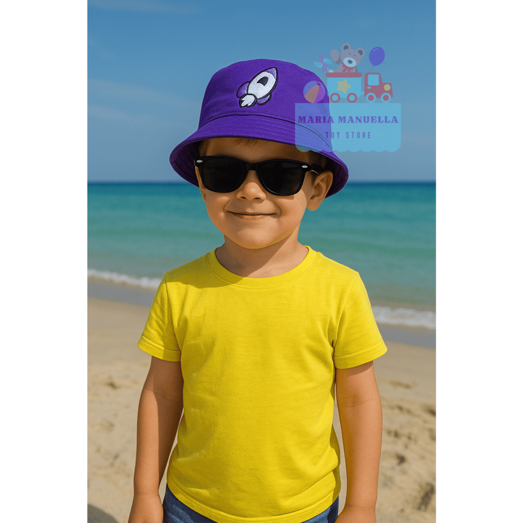 Chapéu de Praia + Óculos Infantil Os Rosas Unissex Bucket Ajustável Personagem Proteção Sol Calor Moda Verão Top