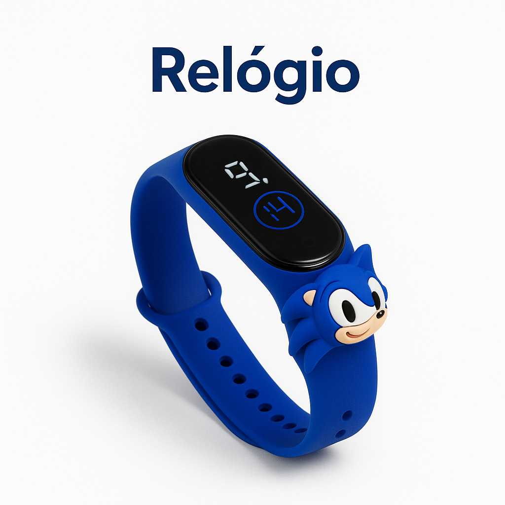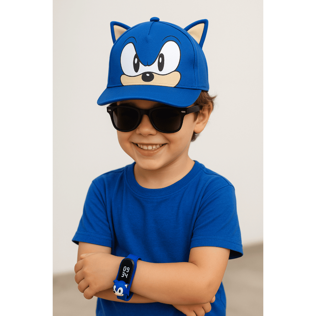 Boné Sonic Infantil – com Orelhinhas + Relógio Digital + Óculos | Presente Perfeito | Pronta Entrega