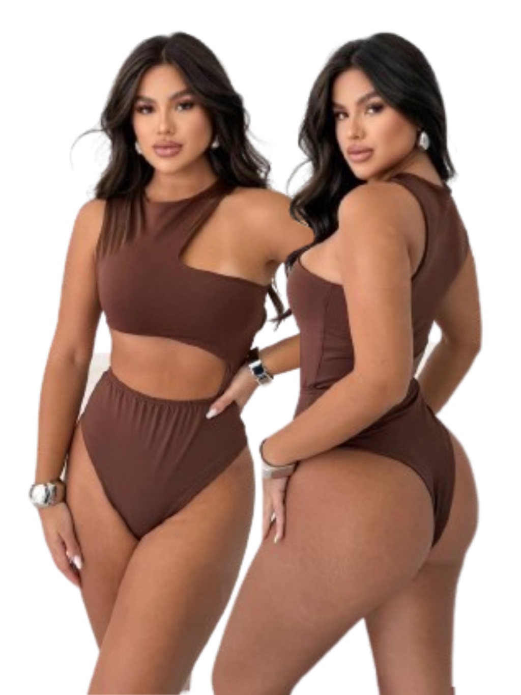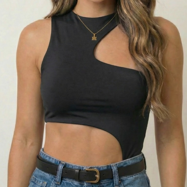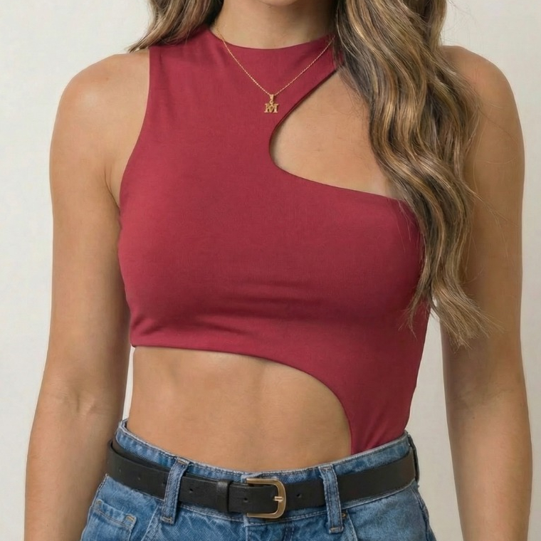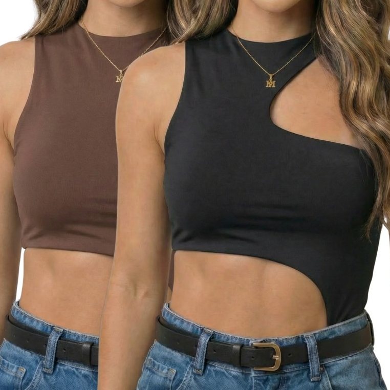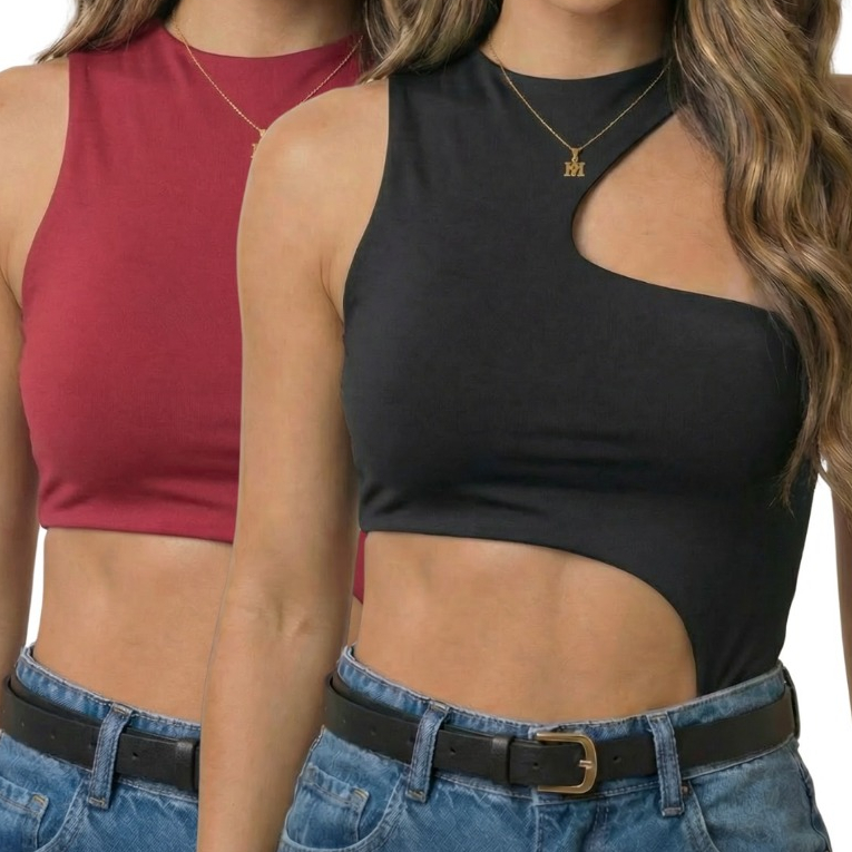 Kit 2 Body Feminino Recorte Geométrico na lateral e no ombro Antonela - Suplex Premium Forro duplo, SexI, Elegante, Chic